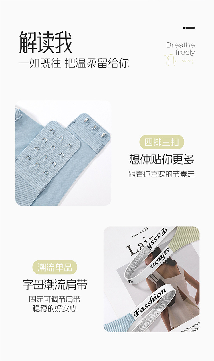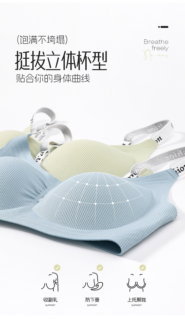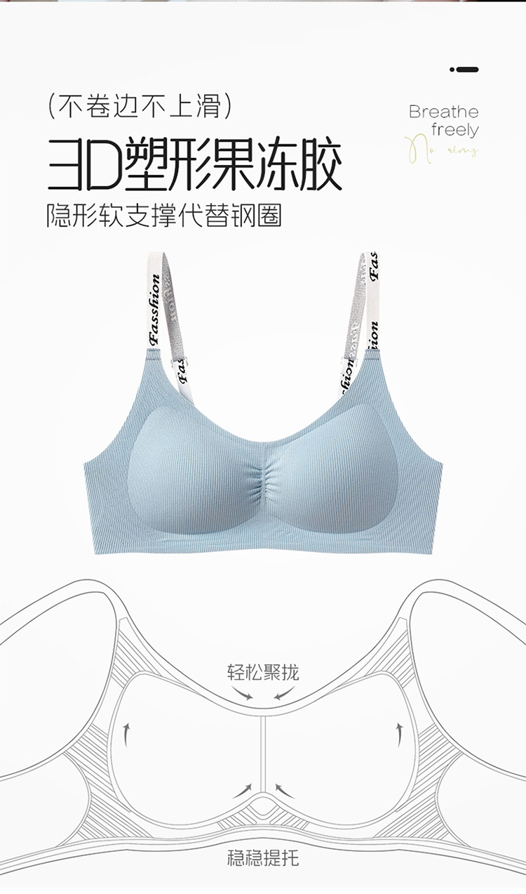 레터 스트랩 무봉제 속옷 일체형 통기성 노와이어 고정컵 수면 브라 여성용 라이트 스포츠 스타일 속옷스토어 가기