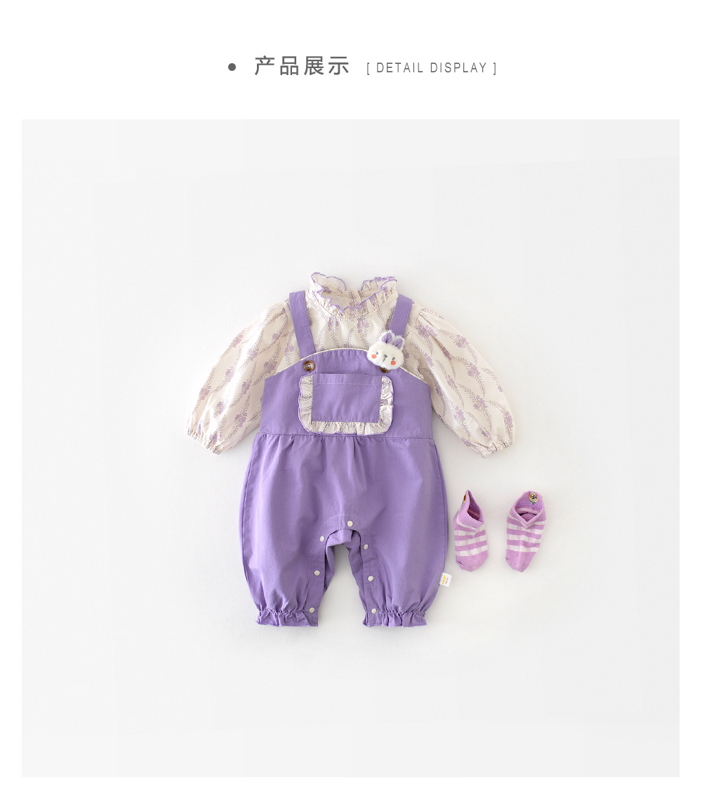 2025秋季新款儿童卡通连身衣 新生儿条纹脱卸领长袖爬服53566