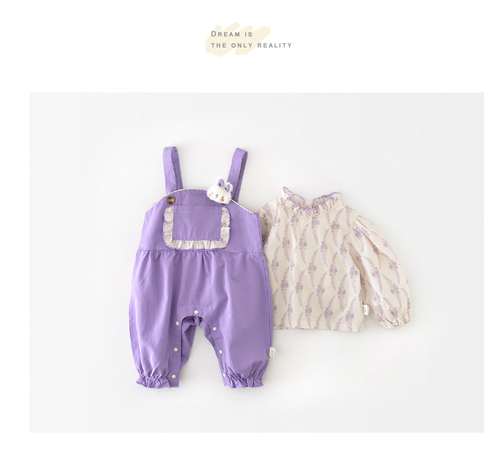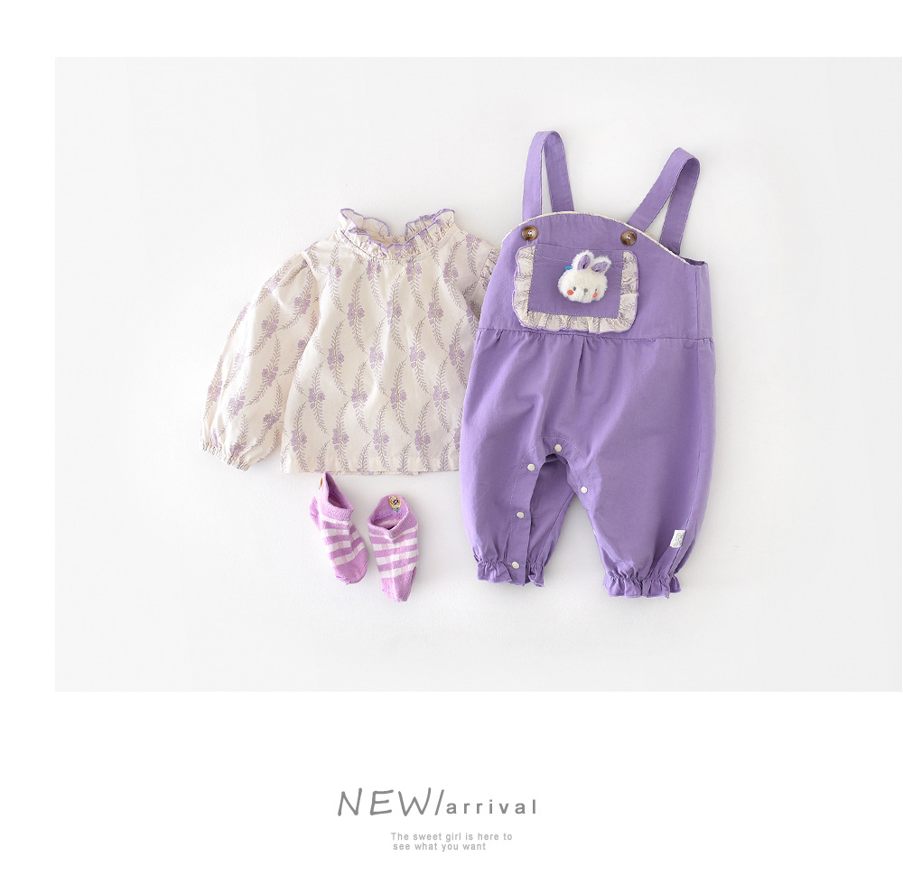 유아 봄 세트 아기 소녀의 세련된 거리 만화 서스펜더 바지 어린이 신선한 전체 인쇄 꽃 탑스토어 가기