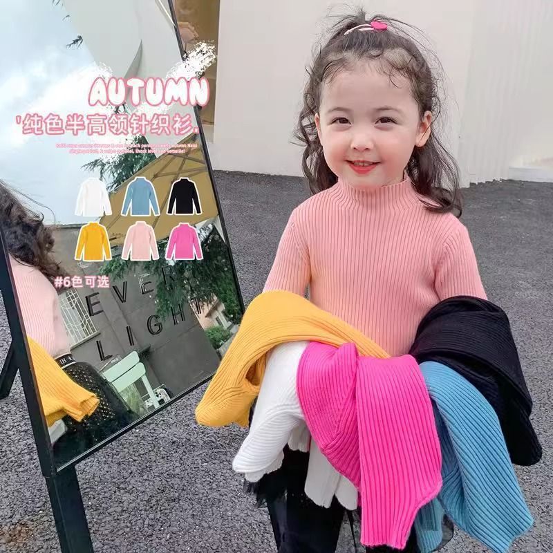 [재고 여자 세미 하이 칼라 스웨터 소프트 왁스 스웨터 가을과 겨울 아기 소녀 긴 소매 탑 슬림 외국 스타일 내부