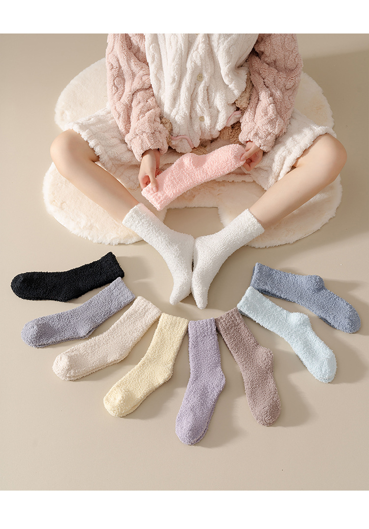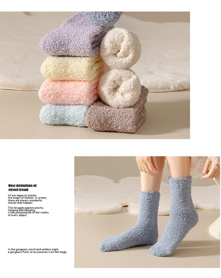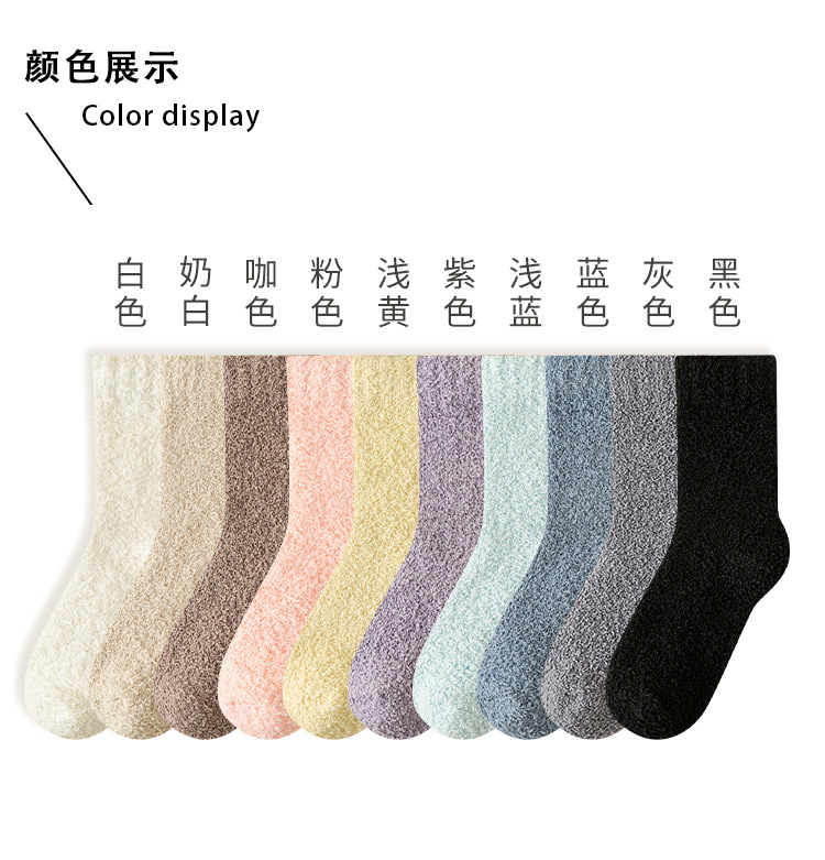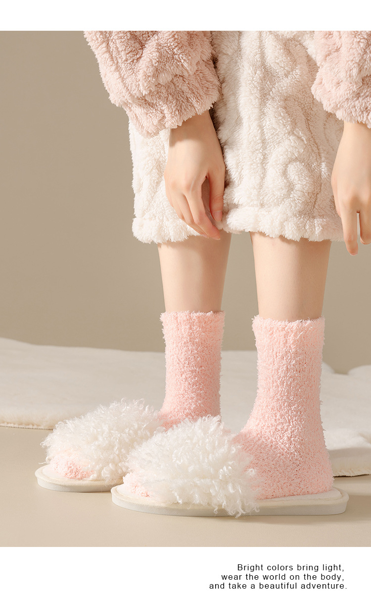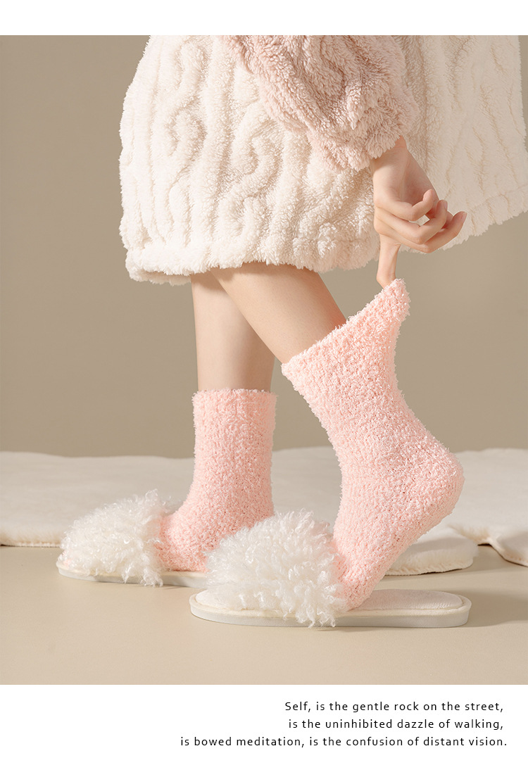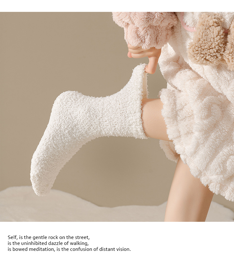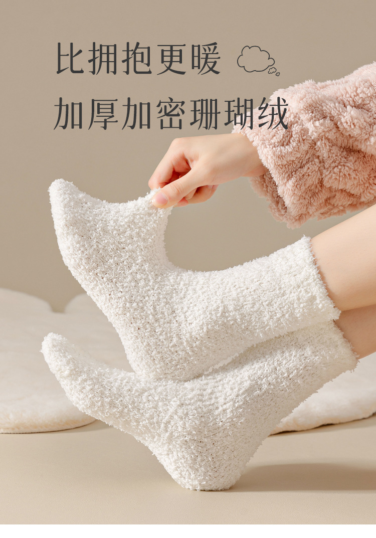 산호 벨벳 감금 양말 홈 귀여운 기모 두꺼운 바닥 양말 가을과 겨울 따뜻한 양말 여성의 중간 종아리 수면 양말