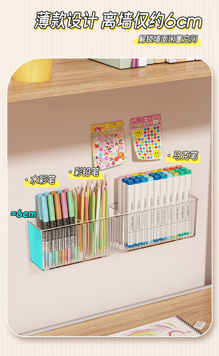 마크 펜 저장 상자 벽 걸러를위한 대용량 어린이 책상 문구 벽 랙 수채화 펜 홀더