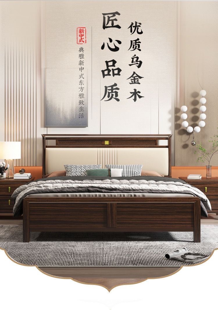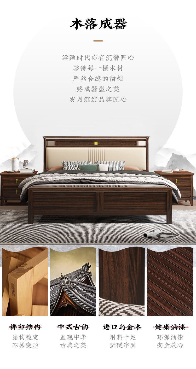 Ebony 나무 단단한 나무 침대 빛 고급 새로운 중국 1.8 m 더블 침대 2M 간단한 마스터 침실 1.5 저장 가구 웨딩 침대스토어 가기