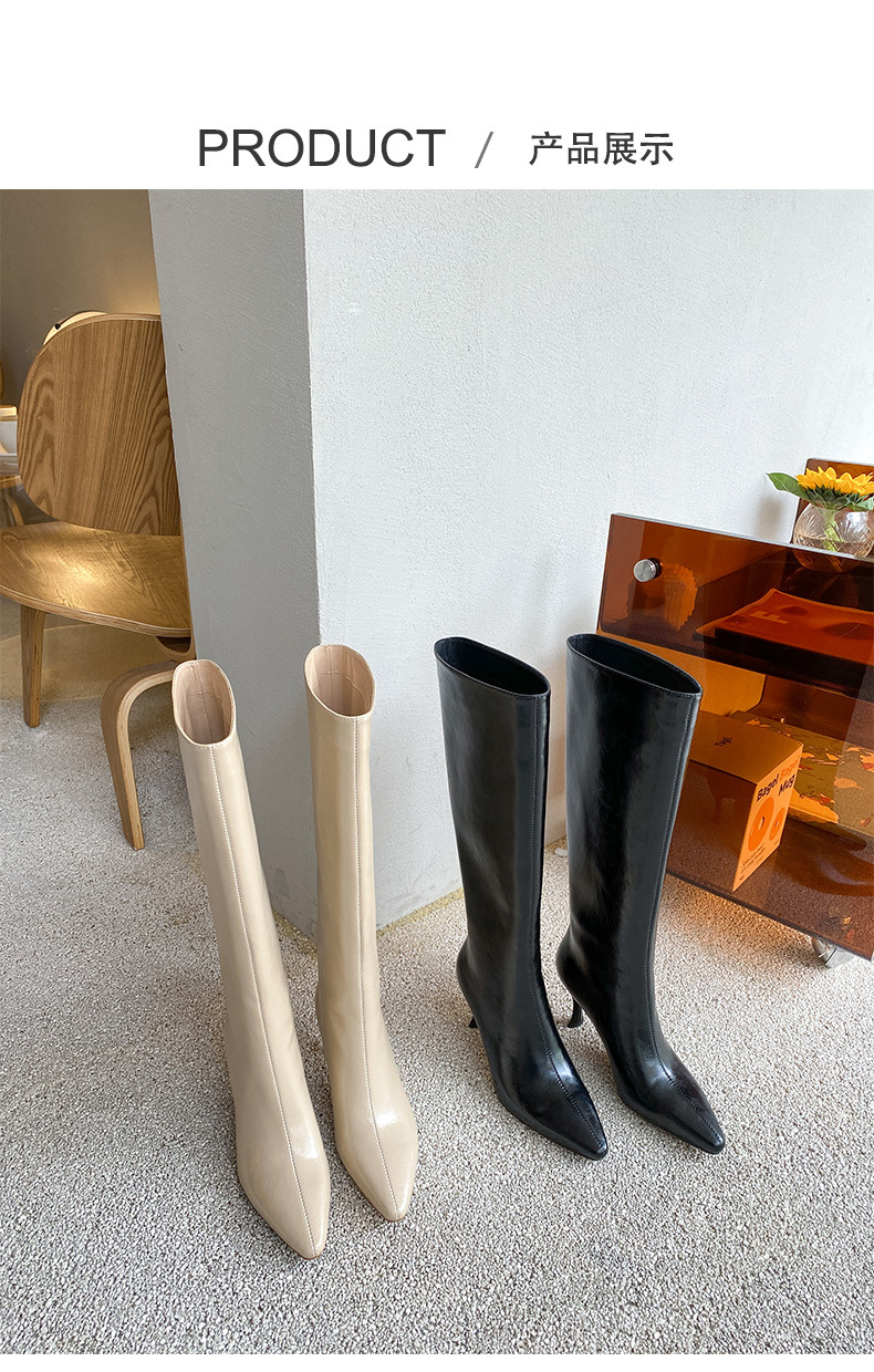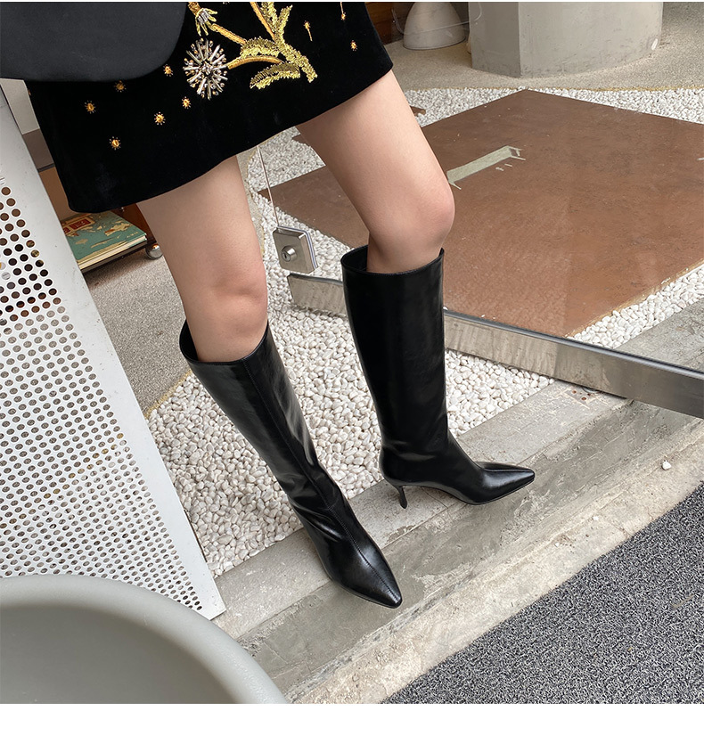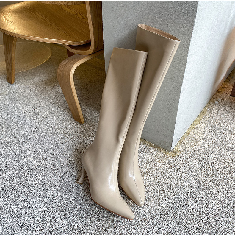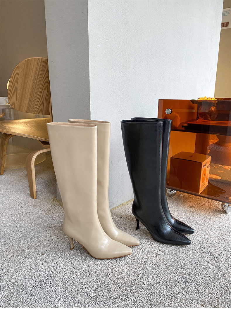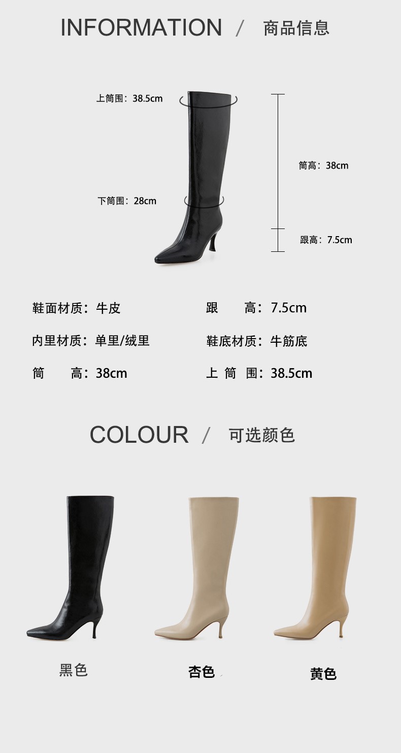 정품 가죽 슬리밍 뾰족한 발가락 스틸레토 하이힐 부츠 여성용 스몰 키 얇은 부츠 큰 튜브 둘레 통통녀 두꺼운 다리 롱 부츠스토어 가기