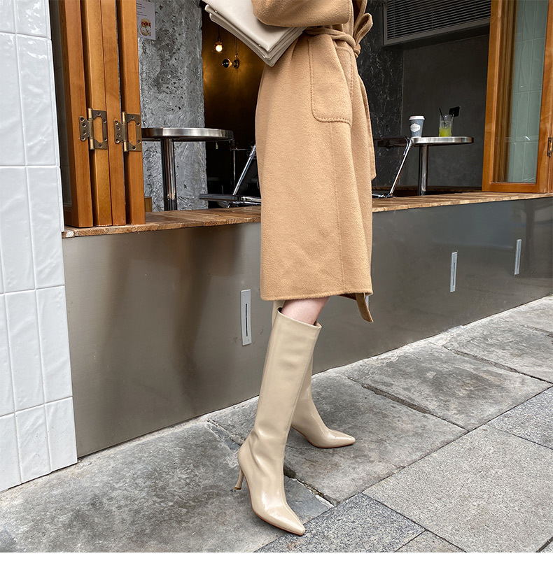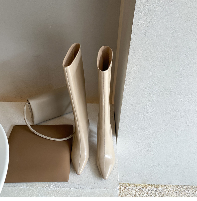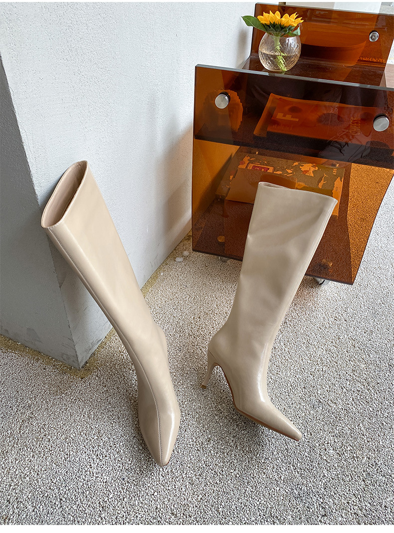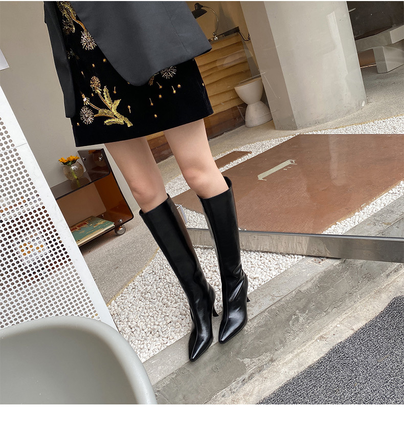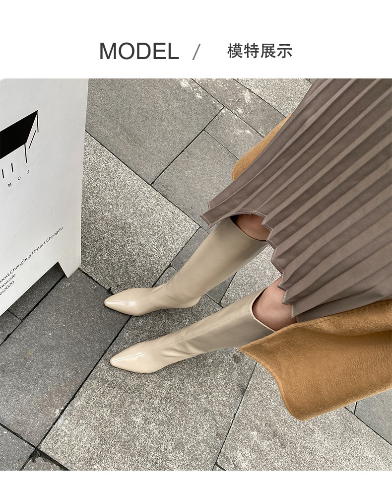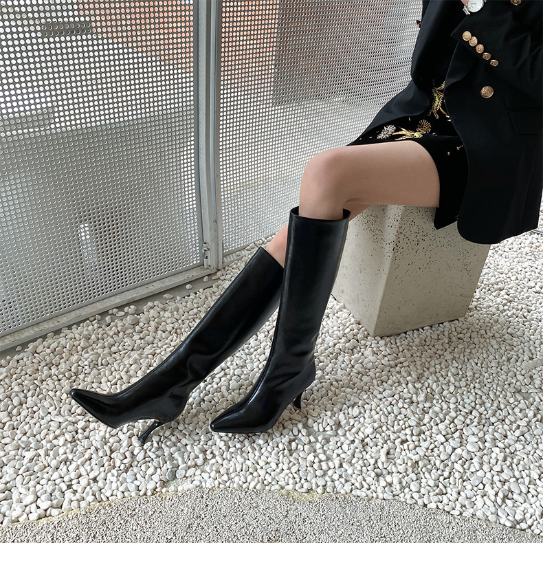 정품 가죽 슬리밍 뾰족한 발가락 스틸레토 하이힐 부츠 여성용 스몰 키 얇은 부츠 큰 튜브 둘레 통통녀 두꺼운 다리 롱 부츠스토어 가기