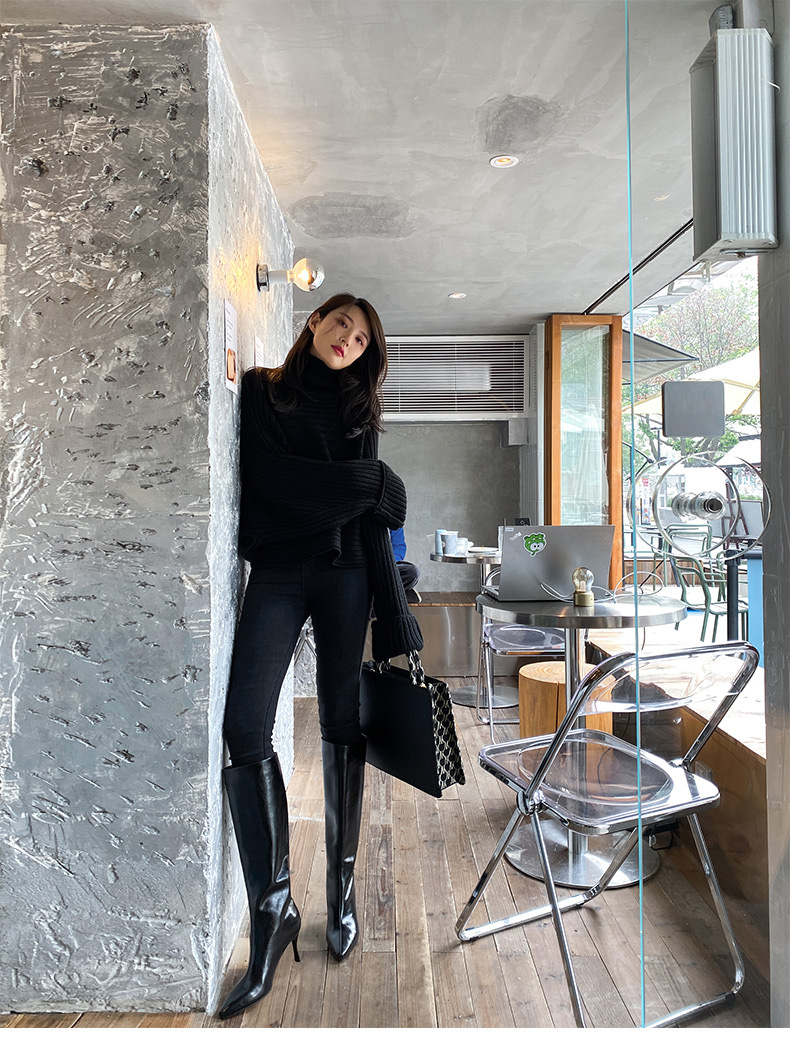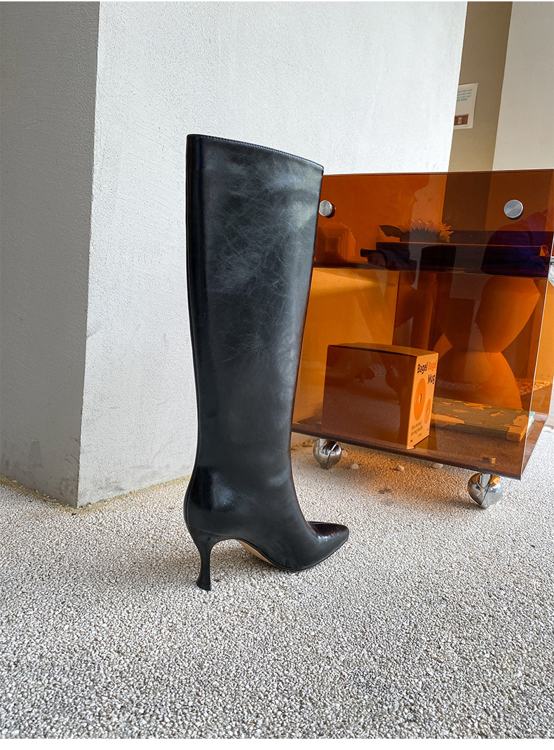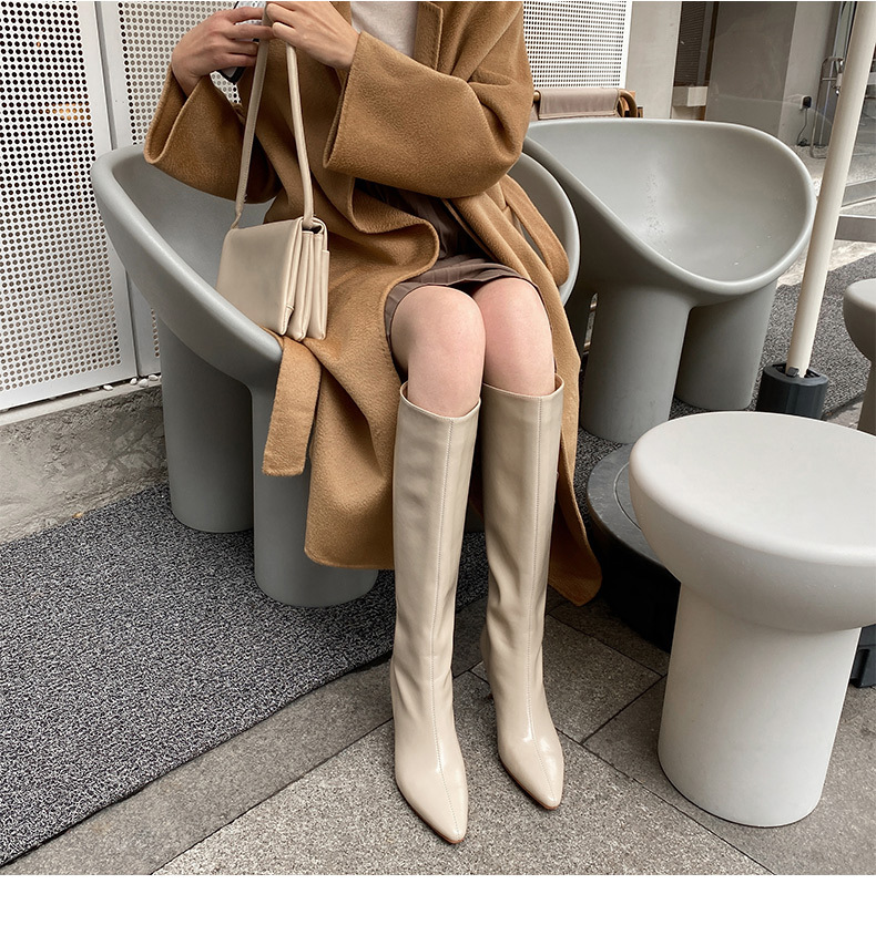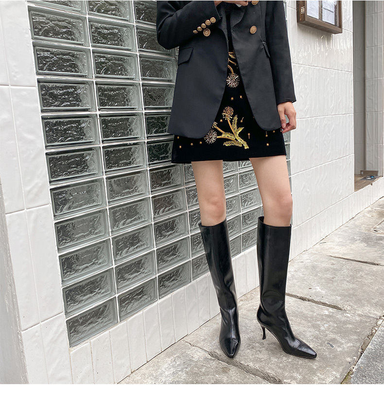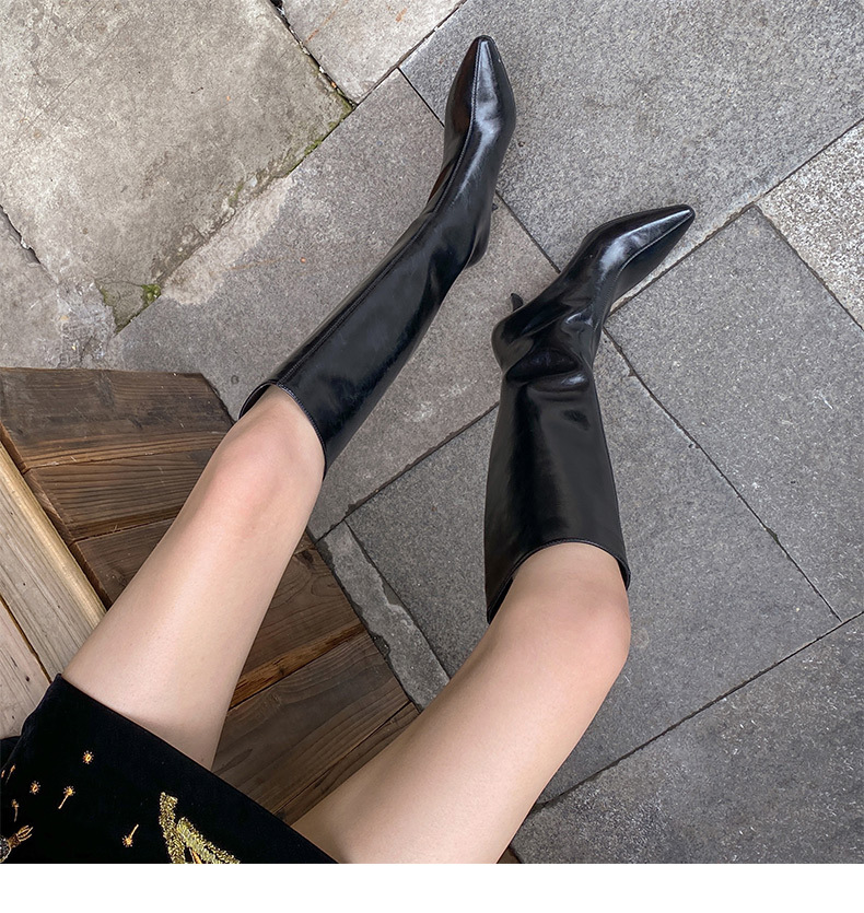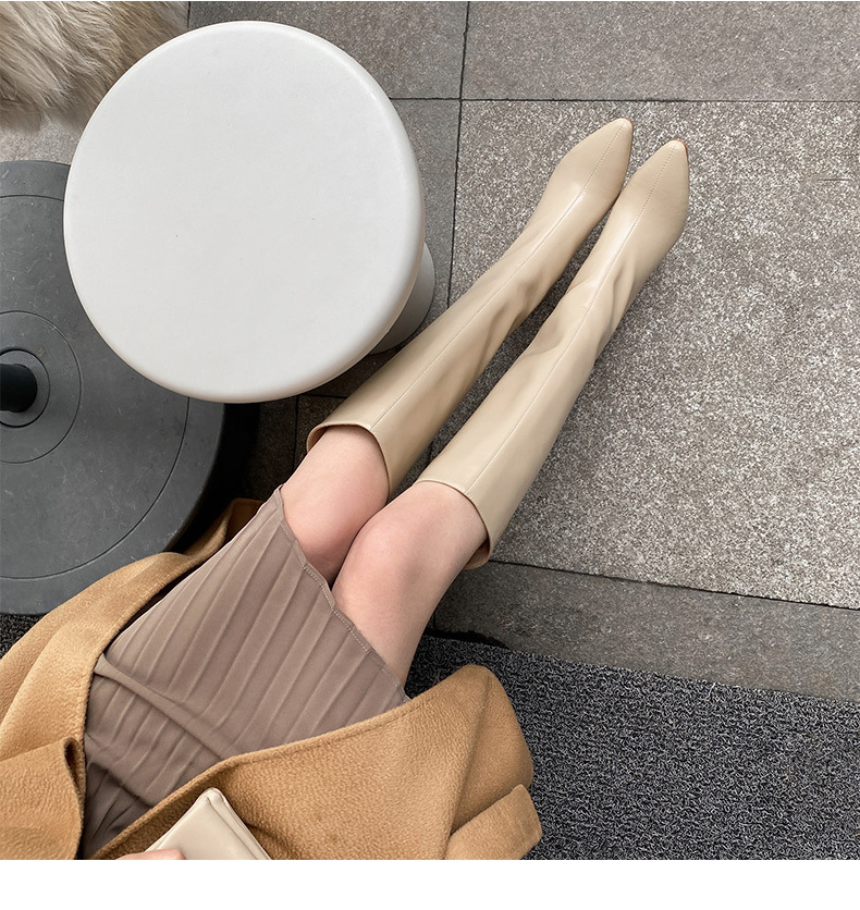 정품 가죽 슬리밍 뾰족한 발가락 스틸레토 하이힐 부츠 여성용 스몰 키 얇은 부츠 큰 튜브 둘레 통통녀 두꺼운 다리 롱 부츠스토어 가기