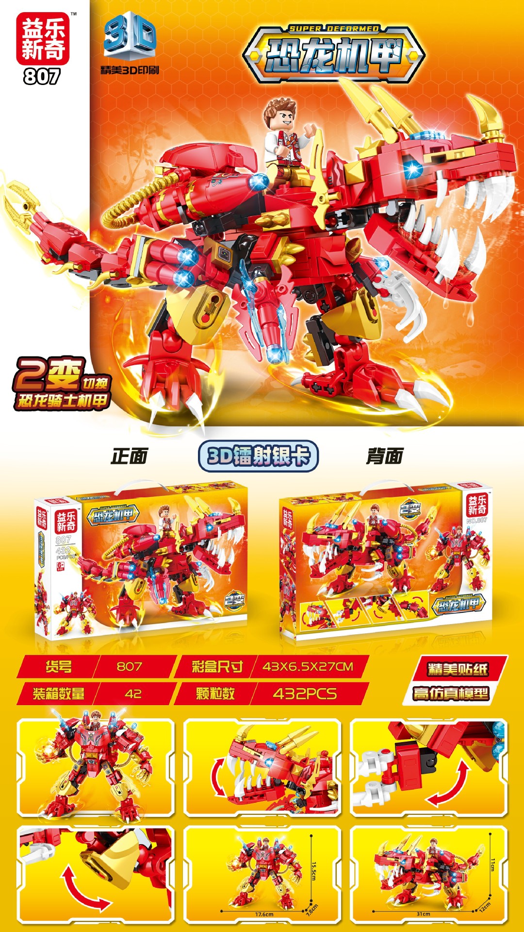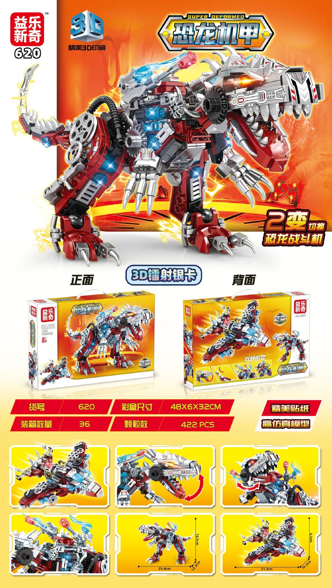 • 2 공룡 메카/422PCS (국경 간 라벨 추가