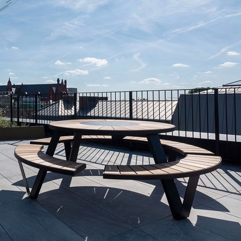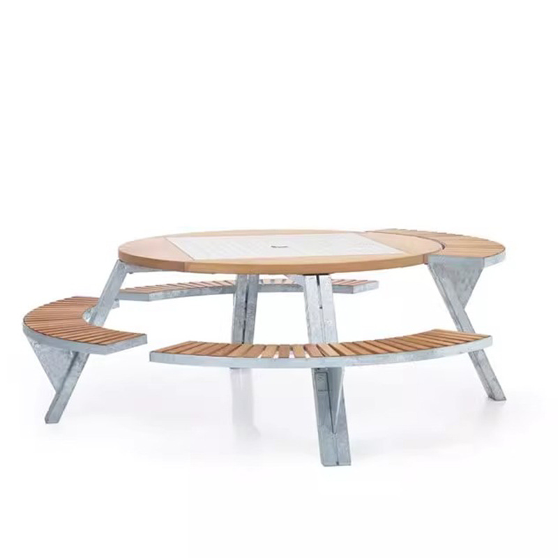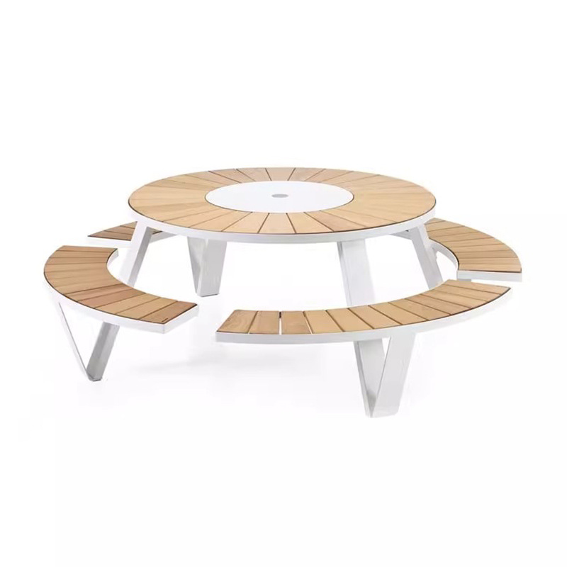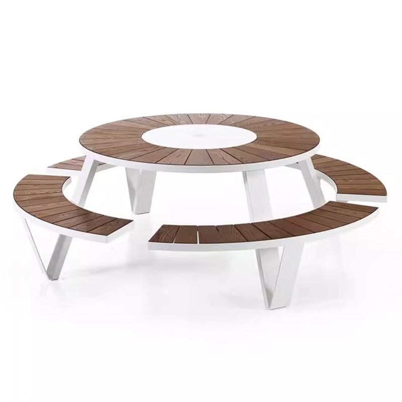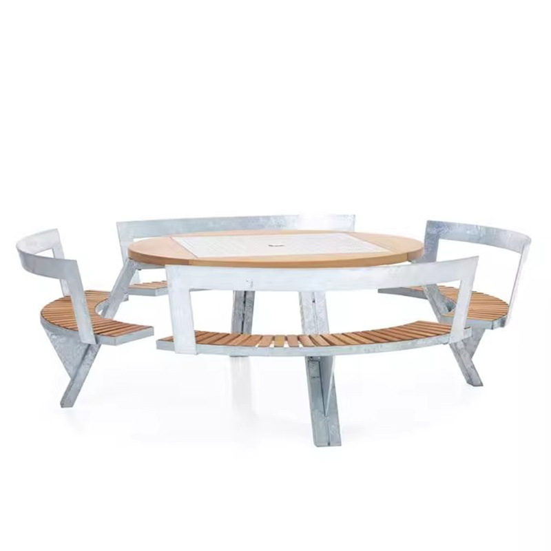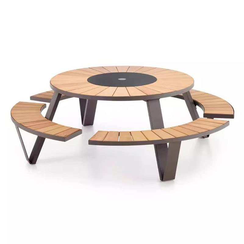 학교 정원 야외 테이블과 의자, 티크 원목 일체형 카페 좌석, 야외 공공장소 공원 벤치 테이블