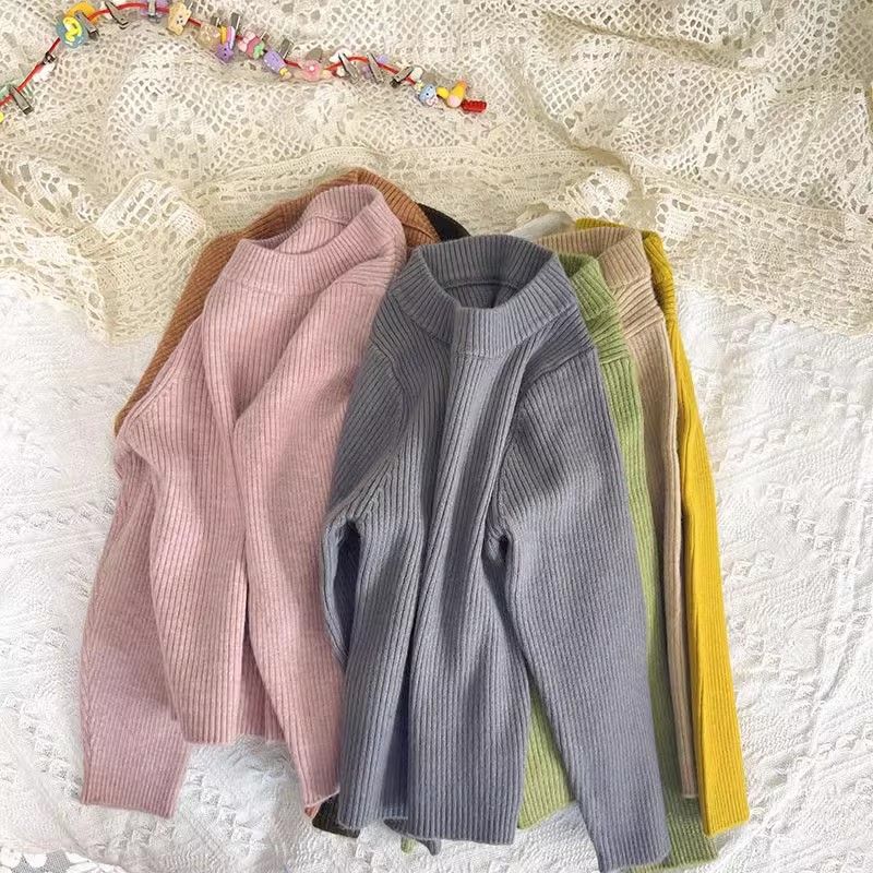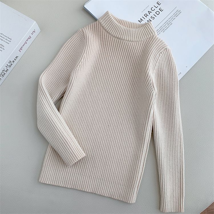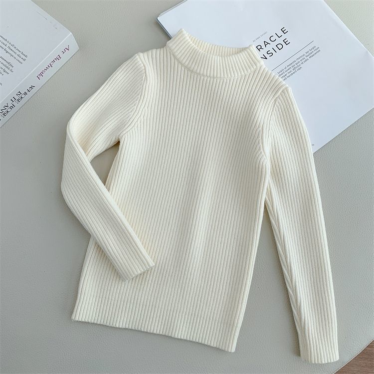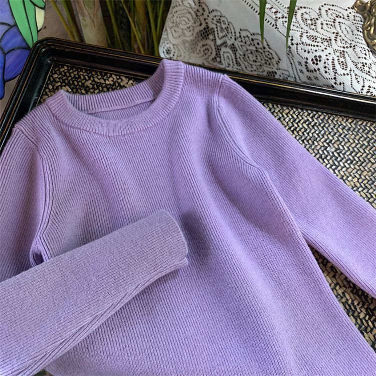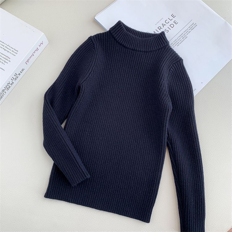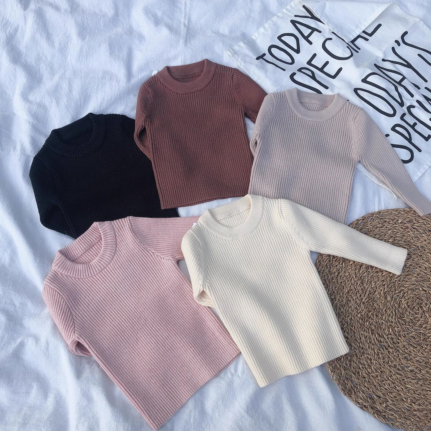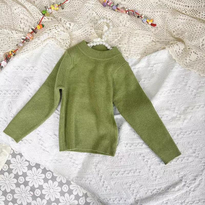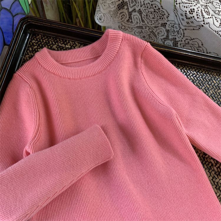 [재고 있음] 여아용 스웨터, 세련된 아동용 단색 라운드넥 니트 이너웨어, 2025년 겨울 신상품, 어린 소녀용스토어 가기