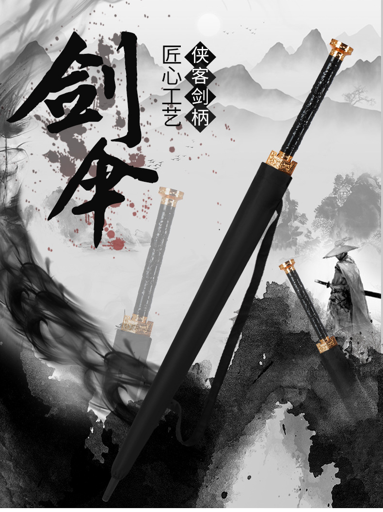 소드 타입 24-뼈 긴 핸들 우산 부시도 핸들 칼 우산 더블 남성 스트레이트 레트로 우산 스타일 개성 큰스토어 가기