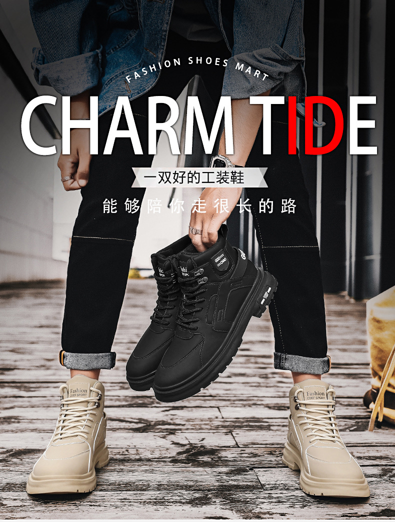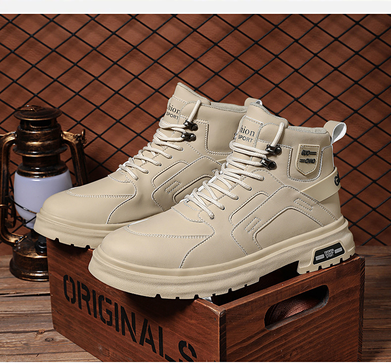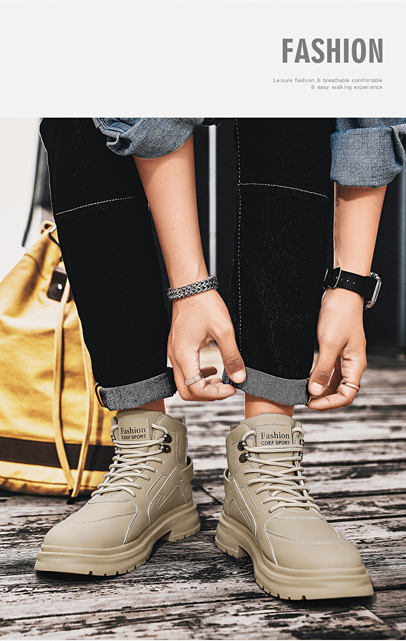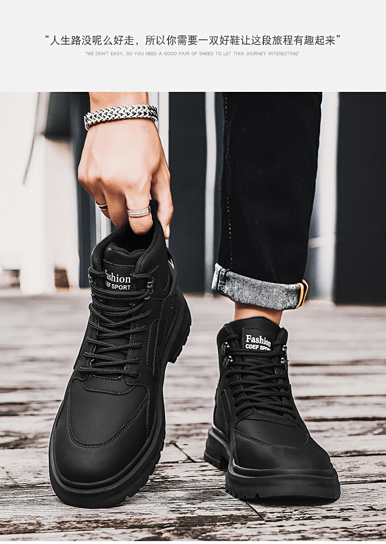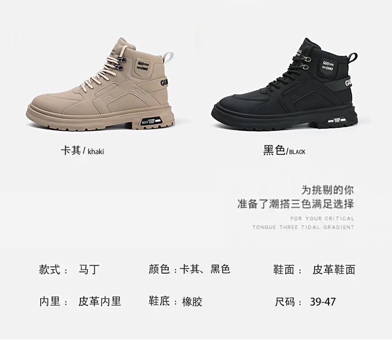 남성 신발 국경 간 가을 및 겨울 툴링 신발 남성 데일리 올 매치 트렌디 슈즈 트렌디 두꺼운 밑창 하이탑 마틴 가죽 부츠스토어 가기