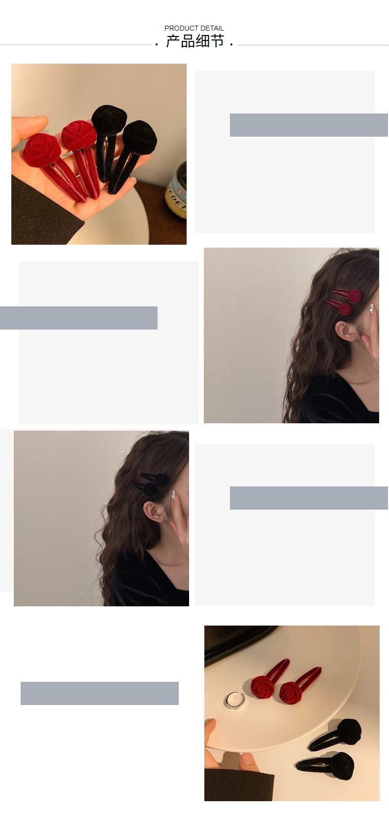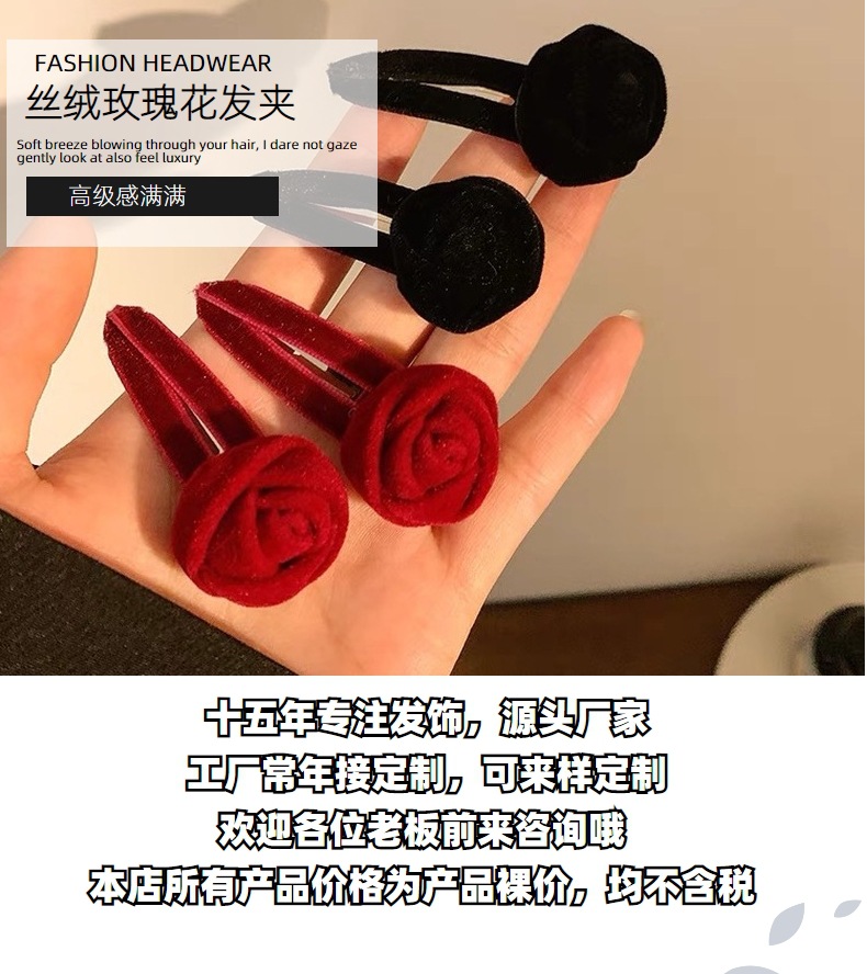 가을과 겨울의 새로운 복고풍 프랑스 벨벳 장미 머리핀 고급 다목적 앞머리 부러진 머리 옆 머리핀 BB 클립스토어 가기