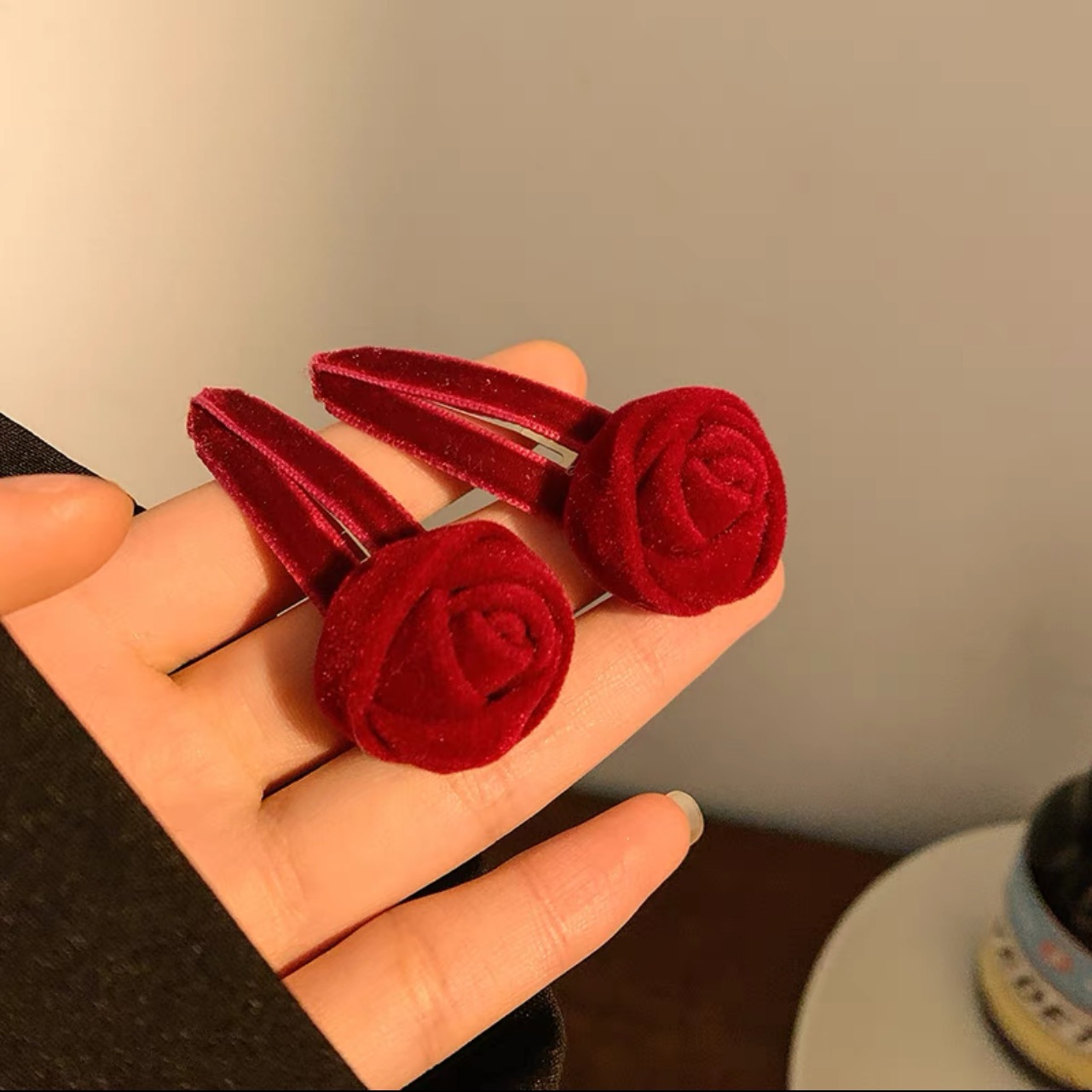 가을과 겨울의 새로운 복고풍 프랑스 벨벳 장미 머리핀 고급 다목적 앞머리 부러진 머리 옆 머리핀 BB 클립