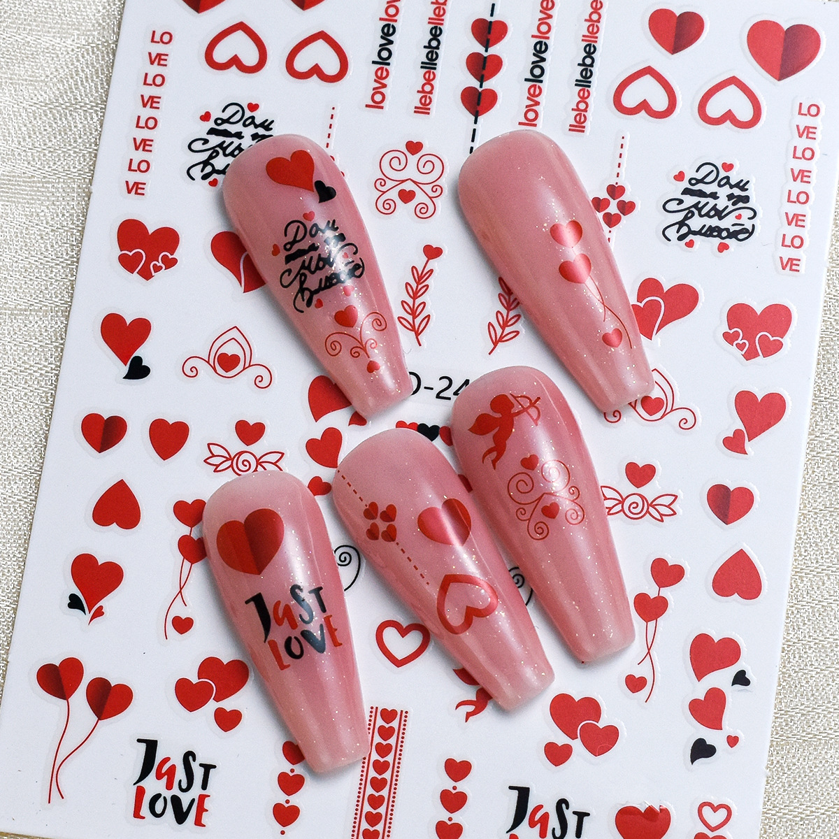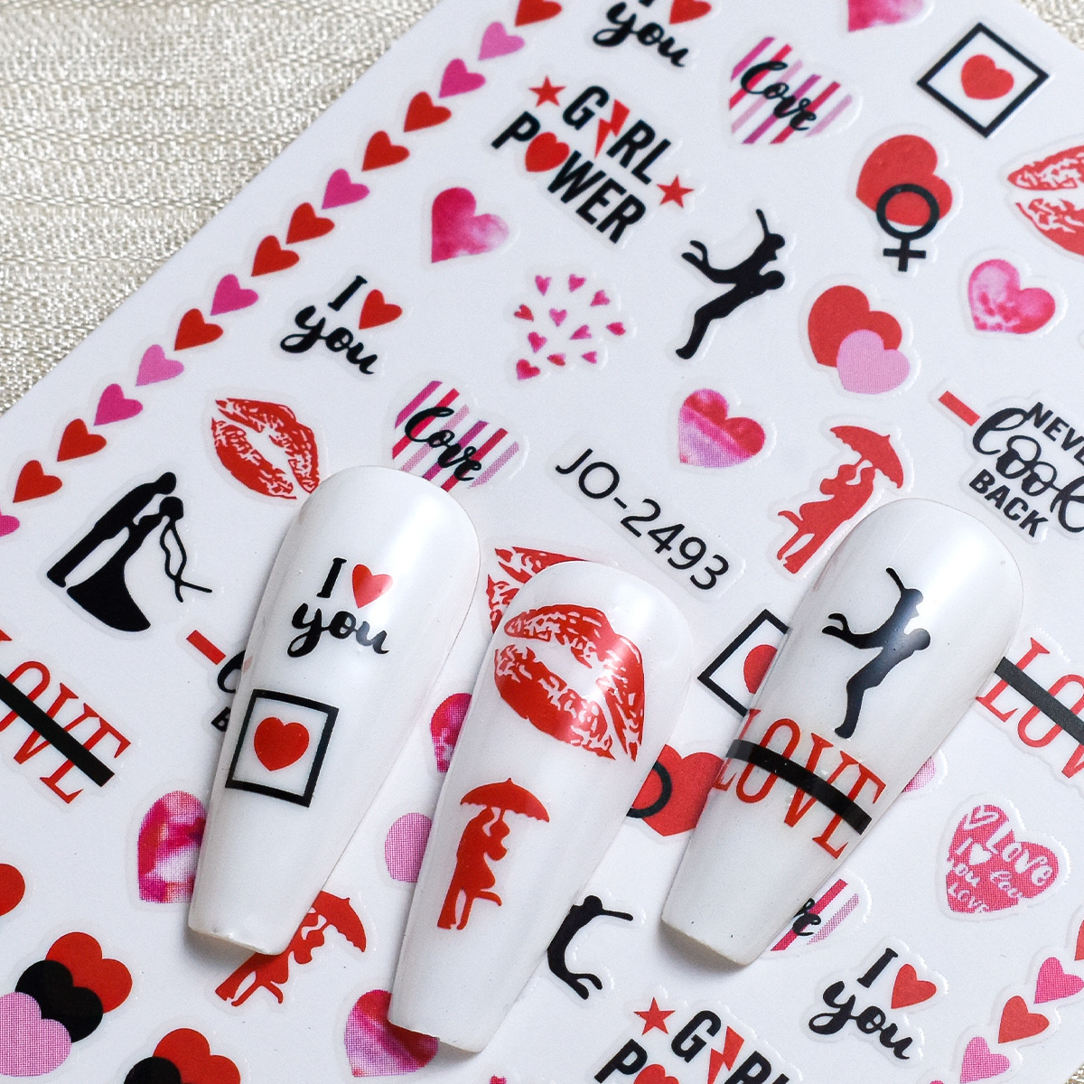 국경 스타일 발렌타인 데이 네일 스티커 뜨거운 섹시한 입술 사랑 장미 선물 네일 스티커 네일 장식