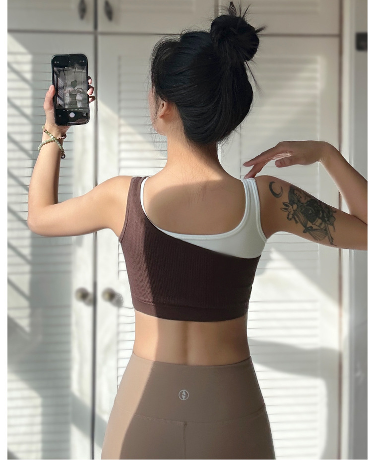 가짜 투피스 충격 방지 수집 요가 피트니스 스포츠 아우터 착용을위한 빠른 건조 조끼 달리기 브래지어 섹시한 브래지어