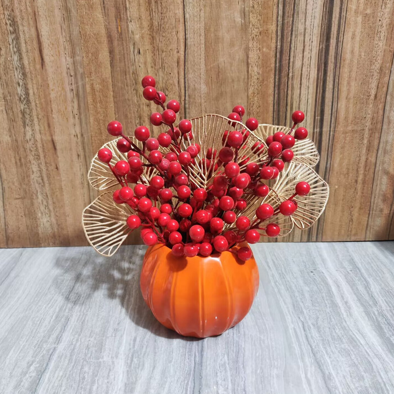 세라믹 꽃 냄비 새해 전야 꽃 붉은 과일 오렌지 호박 꽃병 고온 세라믹 인공 꽃 인공 꽃 영양 물 바탕 화면 병스토어 가기