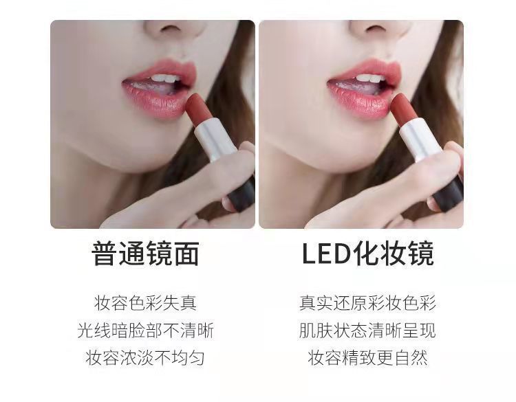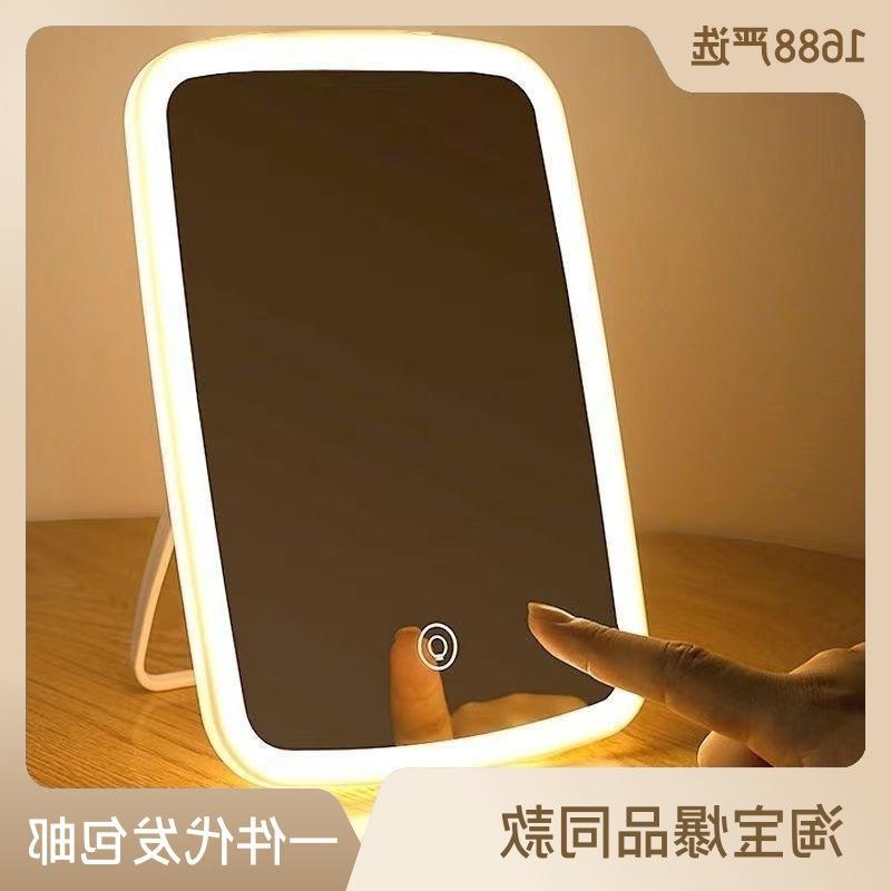 메이크업 거울 led 램프 접히는 충전식 빛 여성 학생 기숙사 높은 가치 소녀 심장 데스크탑 거울