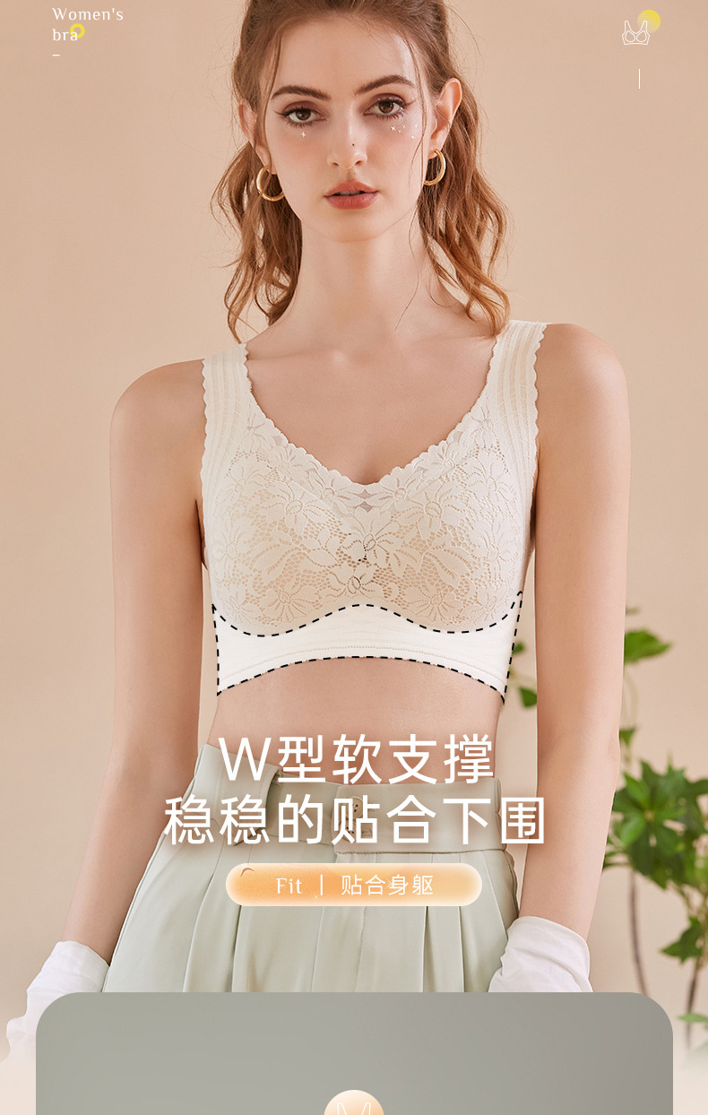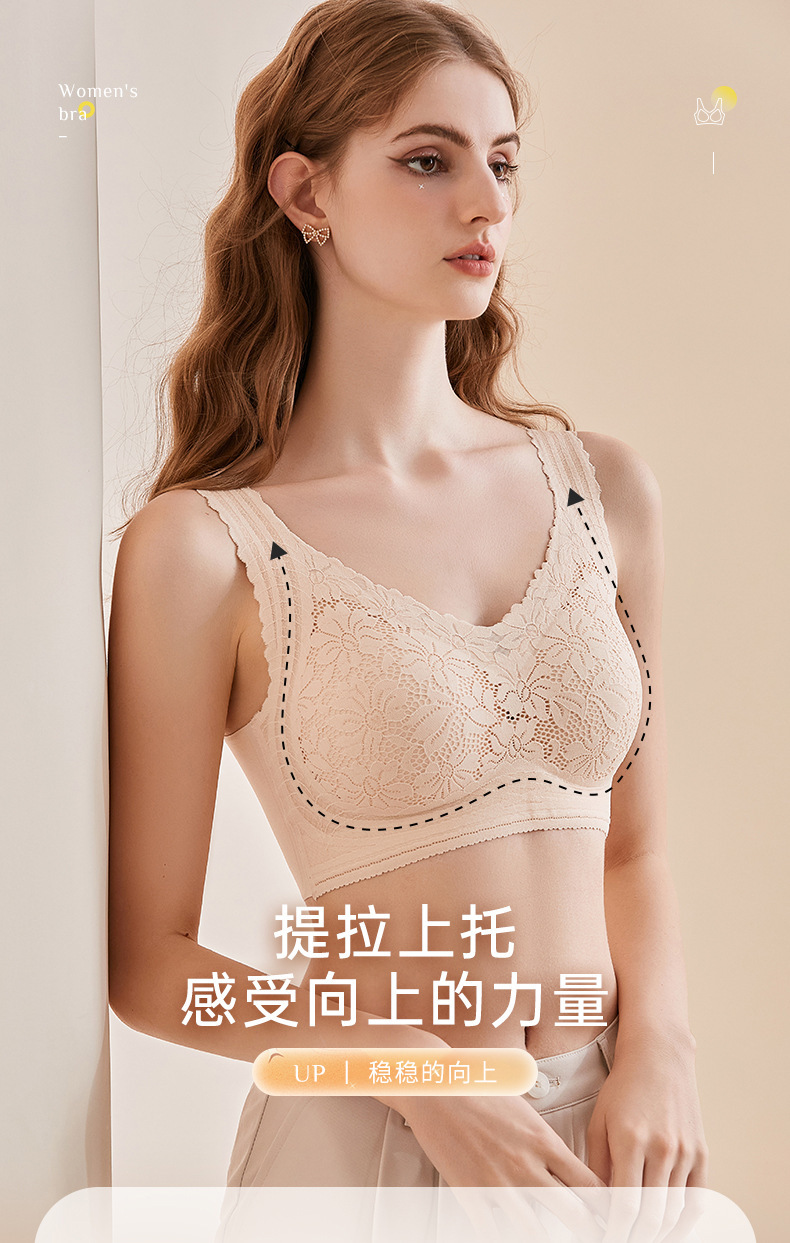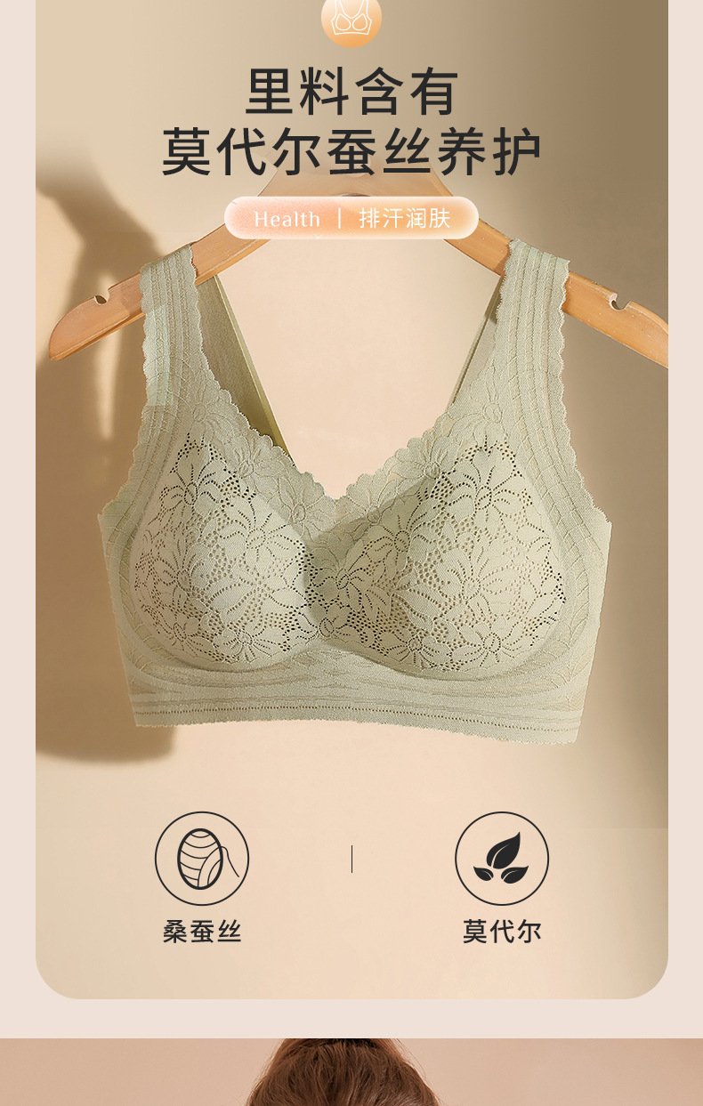 원활한 꽃 레이스 속옷 작은 가슴 푸시 업 무선 조끼 스타일의 부드러운 지원 섹시한 실크 스포츠 브래지어