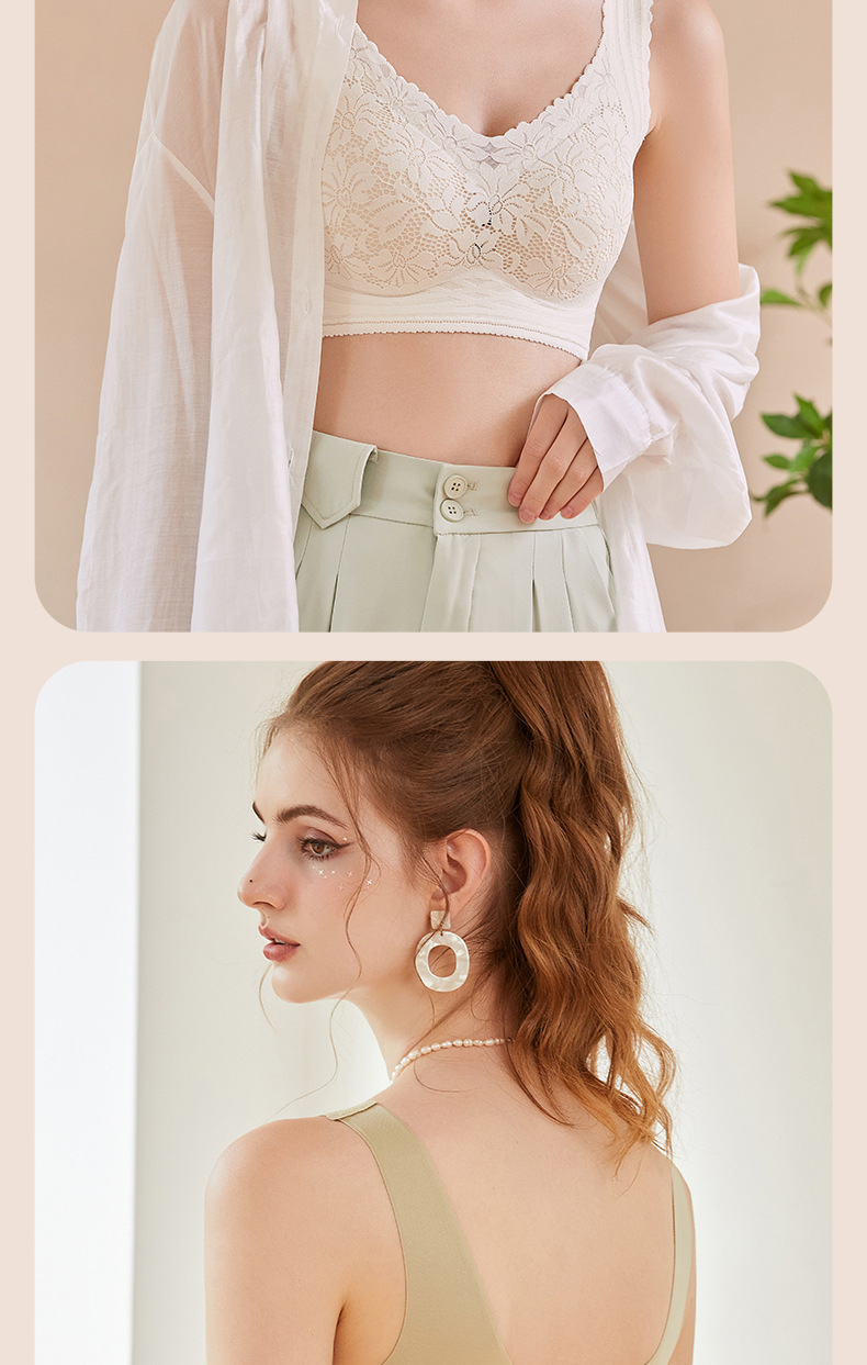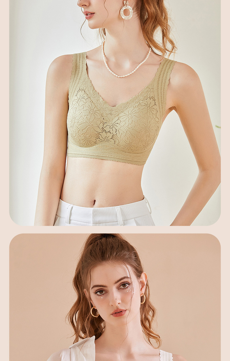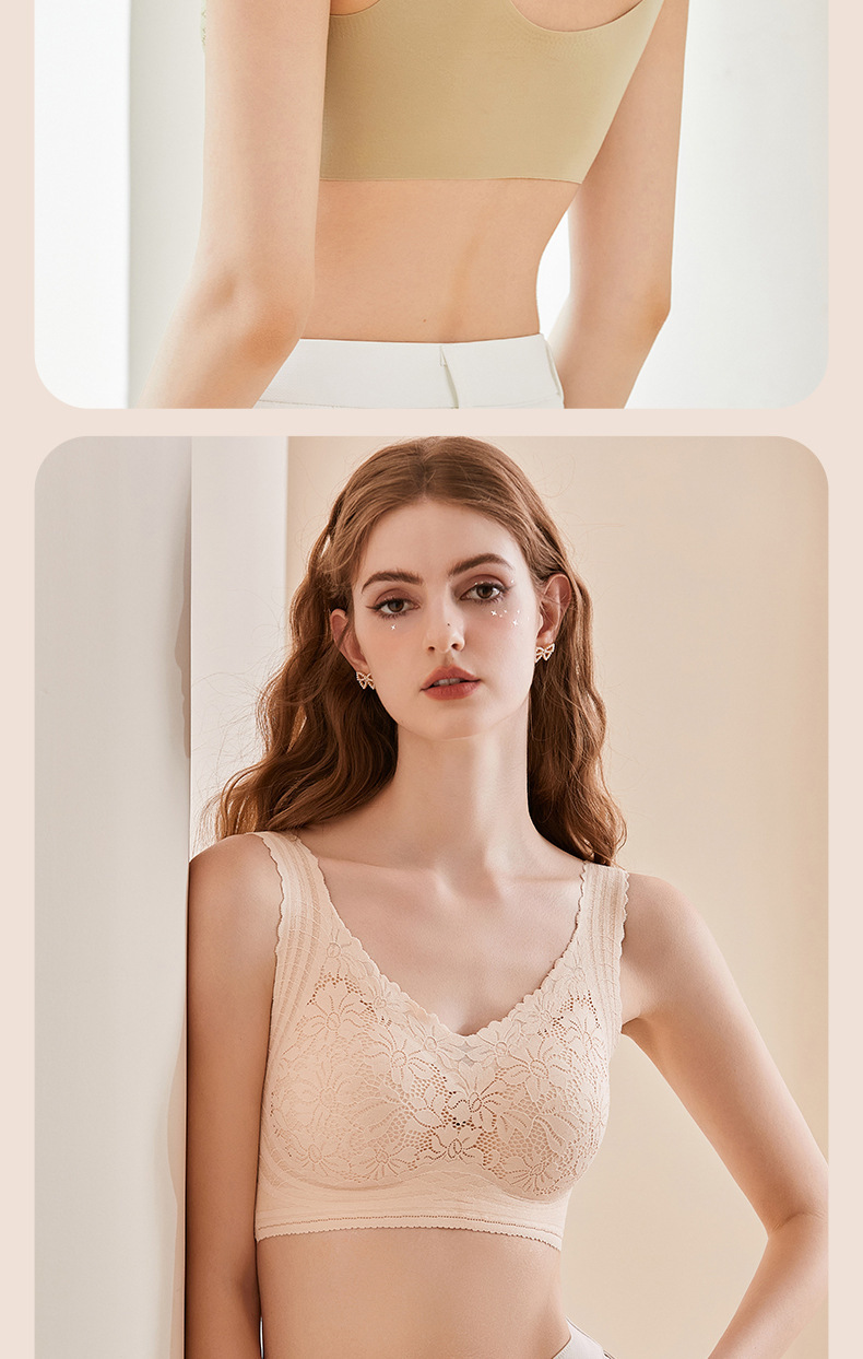 원활한 꽃 레이스 속옷 작은 가슴 푸시 업 무선 조끼 스타일의 부드러운 지원 섹시한 실크 스포츠 브래지어스토어 가기