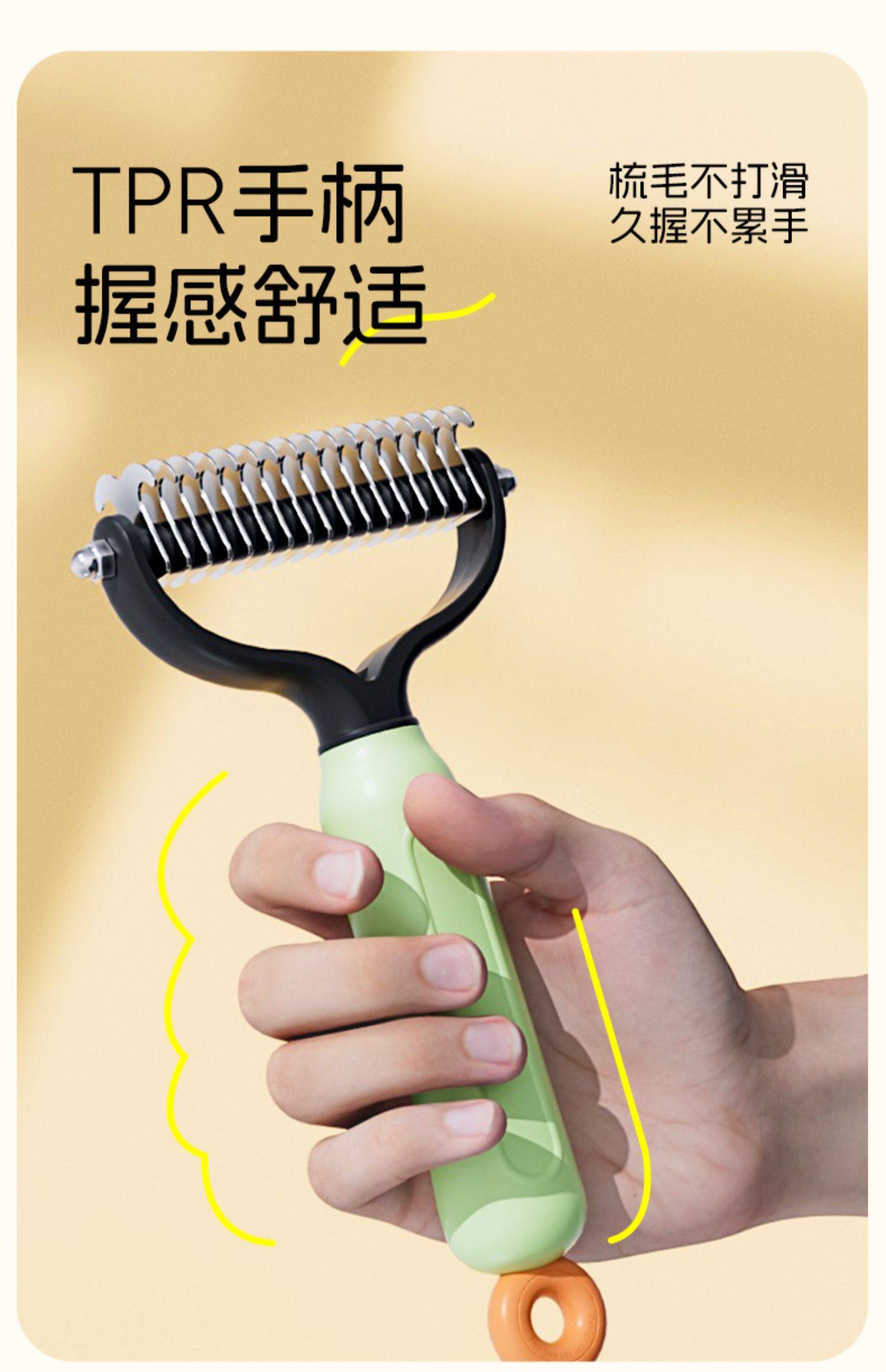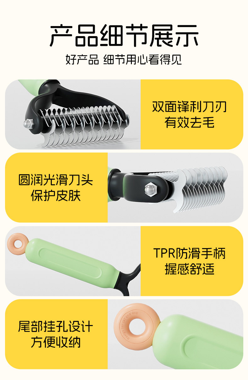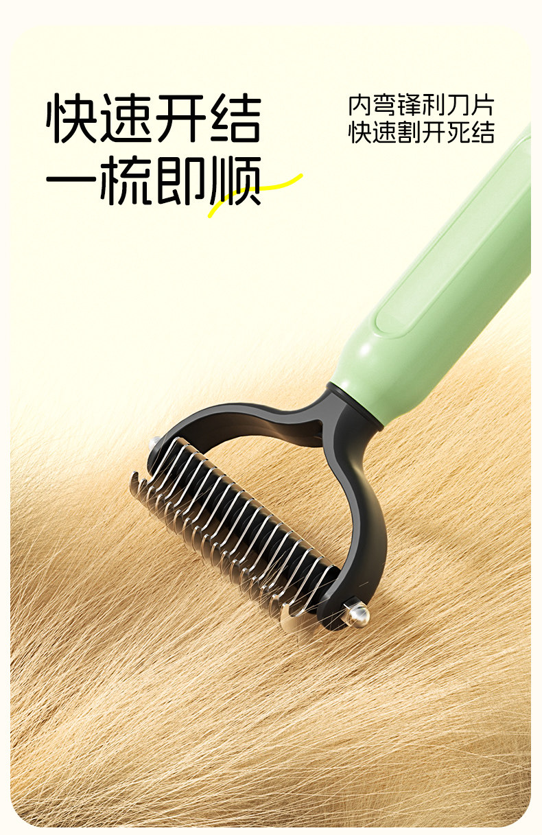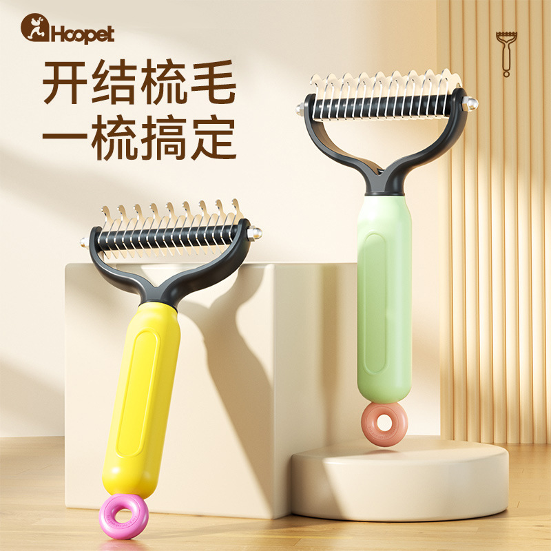 【品名】:HOOPET宠物双面开结梳(黄/绿)(S/L)