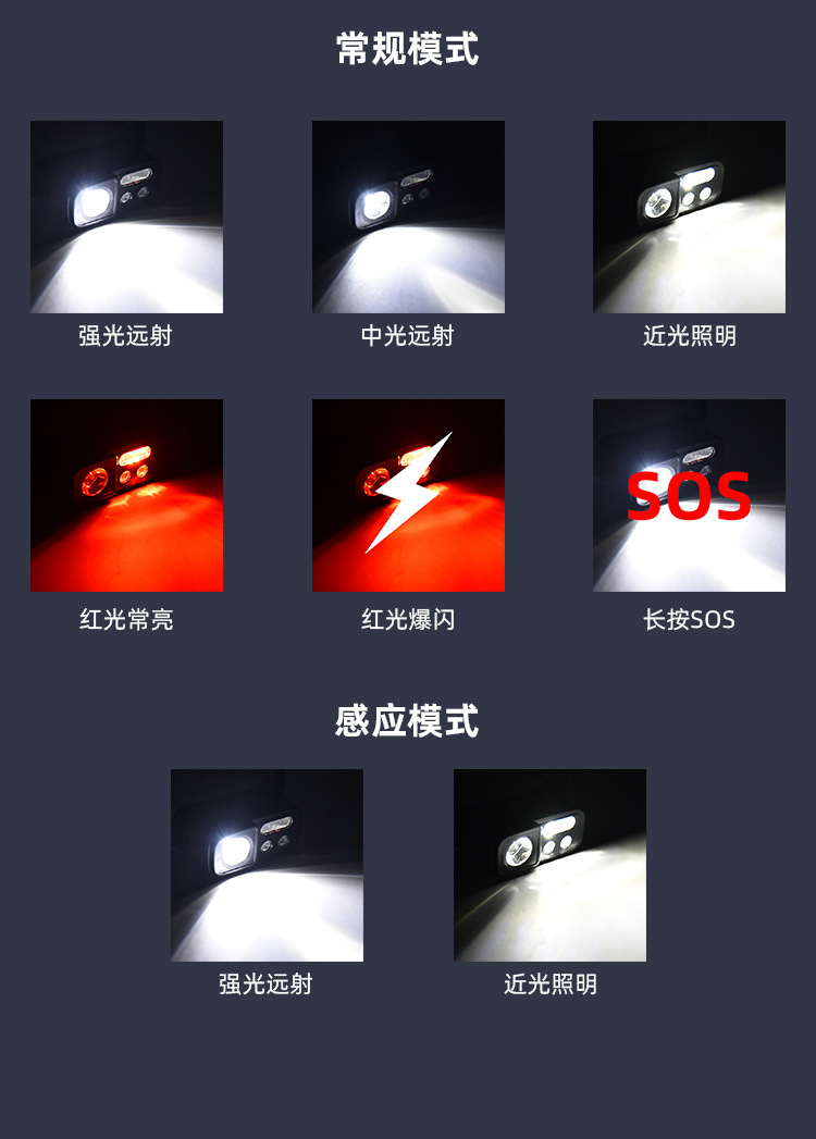 크로스 국경 경량 LED 유도 헤드 라이트 TYPE-C 전원 디스플레이 야외 달리기 조명 낚시 헤드 라이트 충전스토어 가기