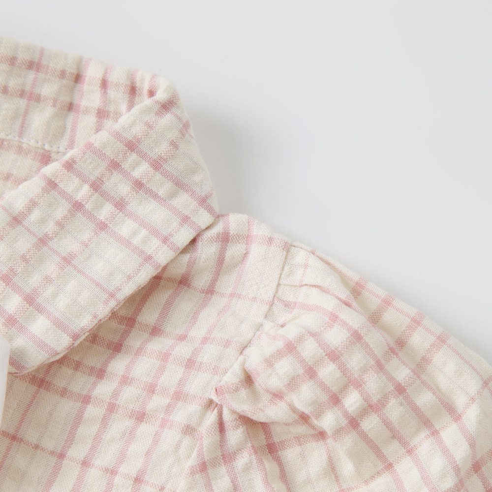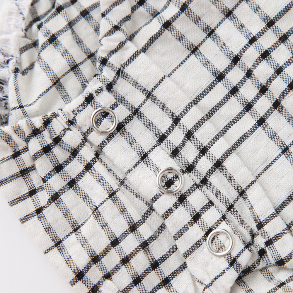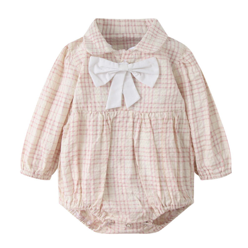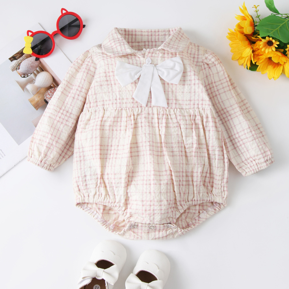 2024 국경 간 봄과 가을 새로운 긴팔 원피스 삼각형 romper 유럽과 미국 스타일의 형제 자매는 격자 무늬 롬퍼 공장 도매