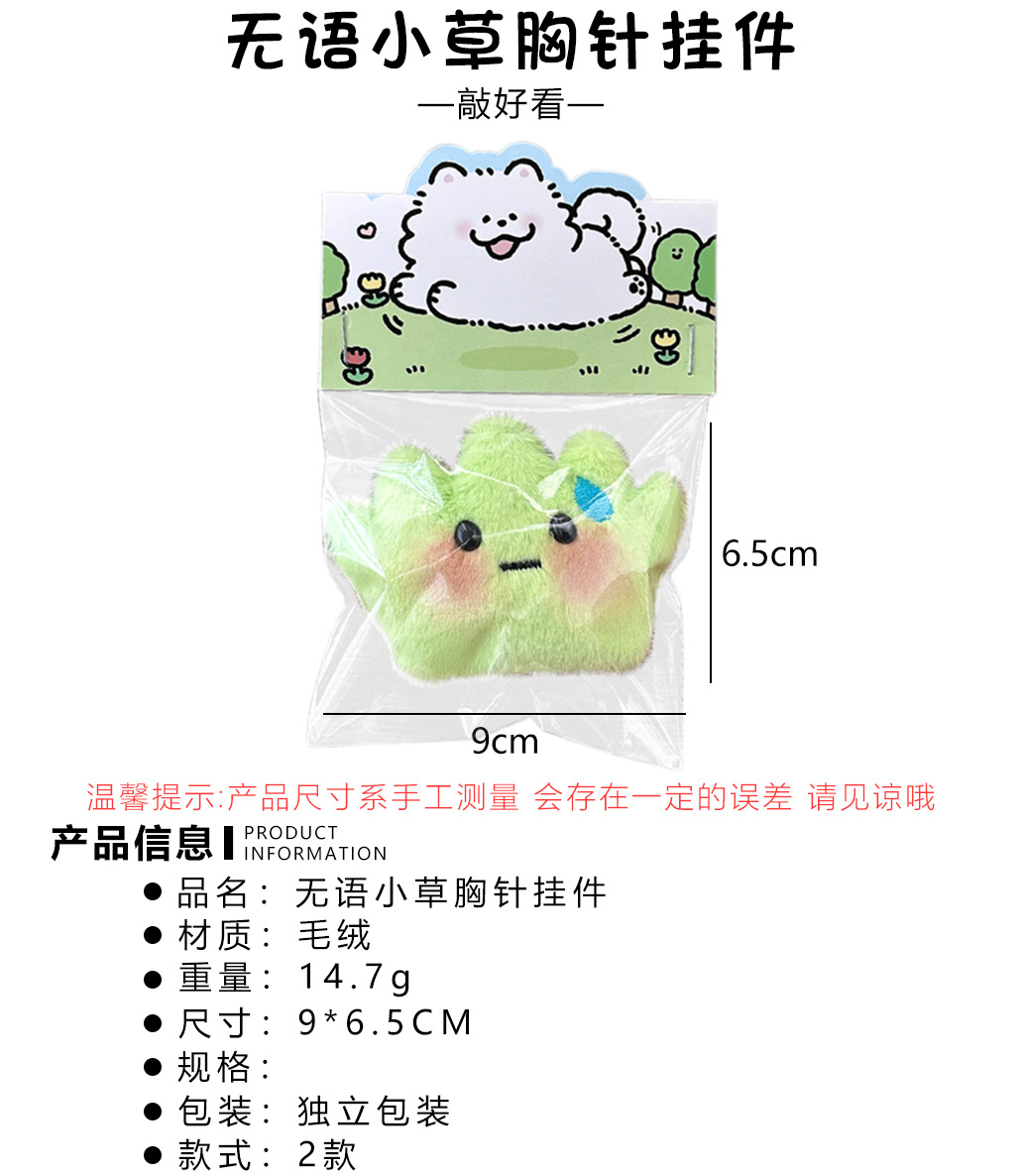 귀여운 봉제 말이없는 잔디 펜던트, 달콤한 스타일 소녀 선물 만화 브로치 모피 펜던트 도매