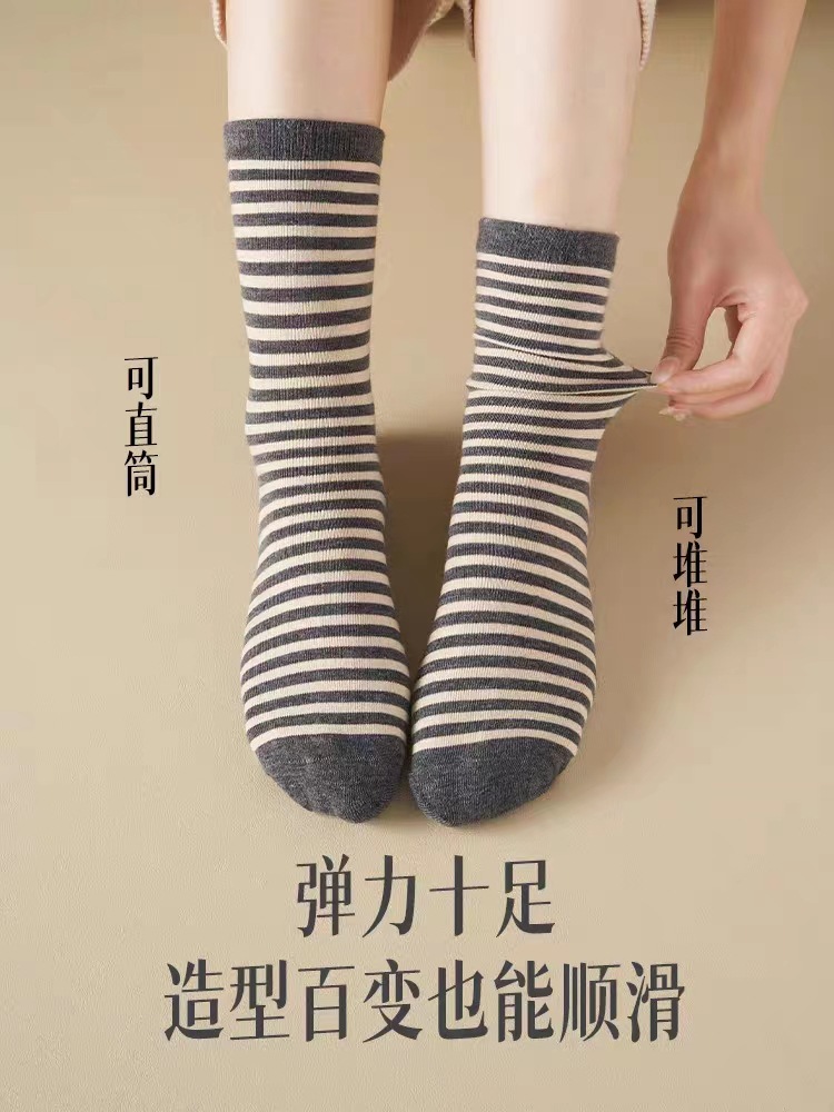 줄무늬 양말 여성용 봄 여름 면 양말 심플한 외출용 인스타 트렌드 인기 스타일 예술적 다용도 컬리지 스타일 일본식 스타일스토어 가기