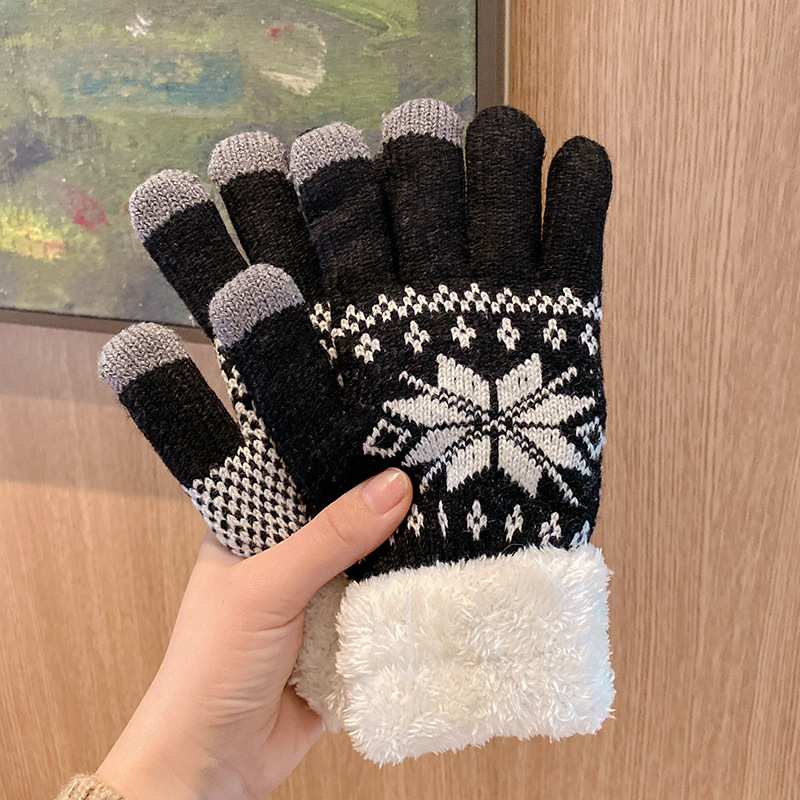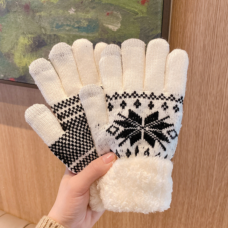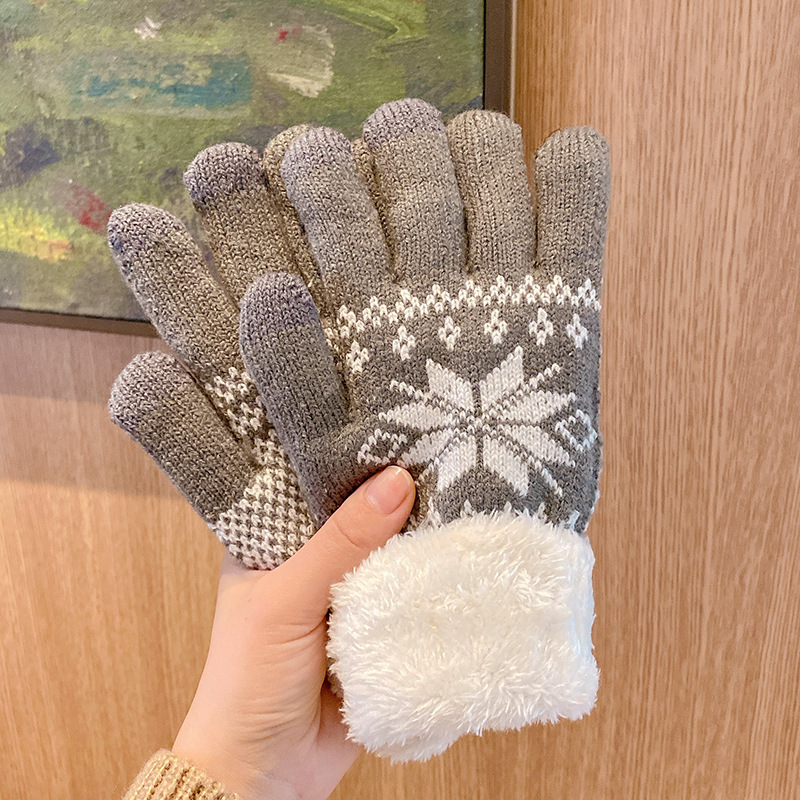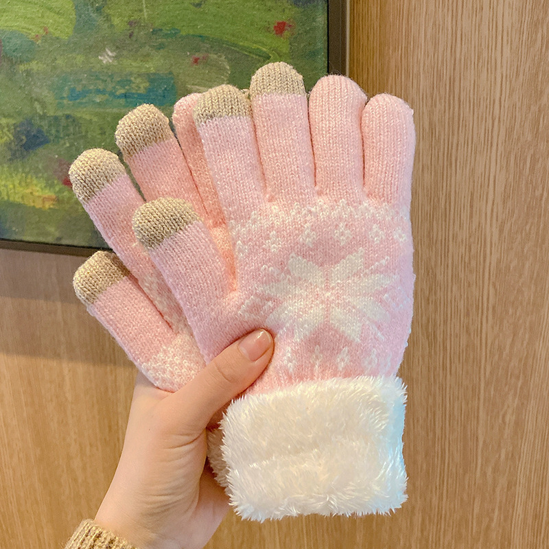겨울철 여학생을 위한 눈송이 장갑, 사이클링과 라이딩을 위한 귀여운 한국어 버전, 벨벳으로 두껍게, 겨울에 따뜻하고 방한스토어 가기