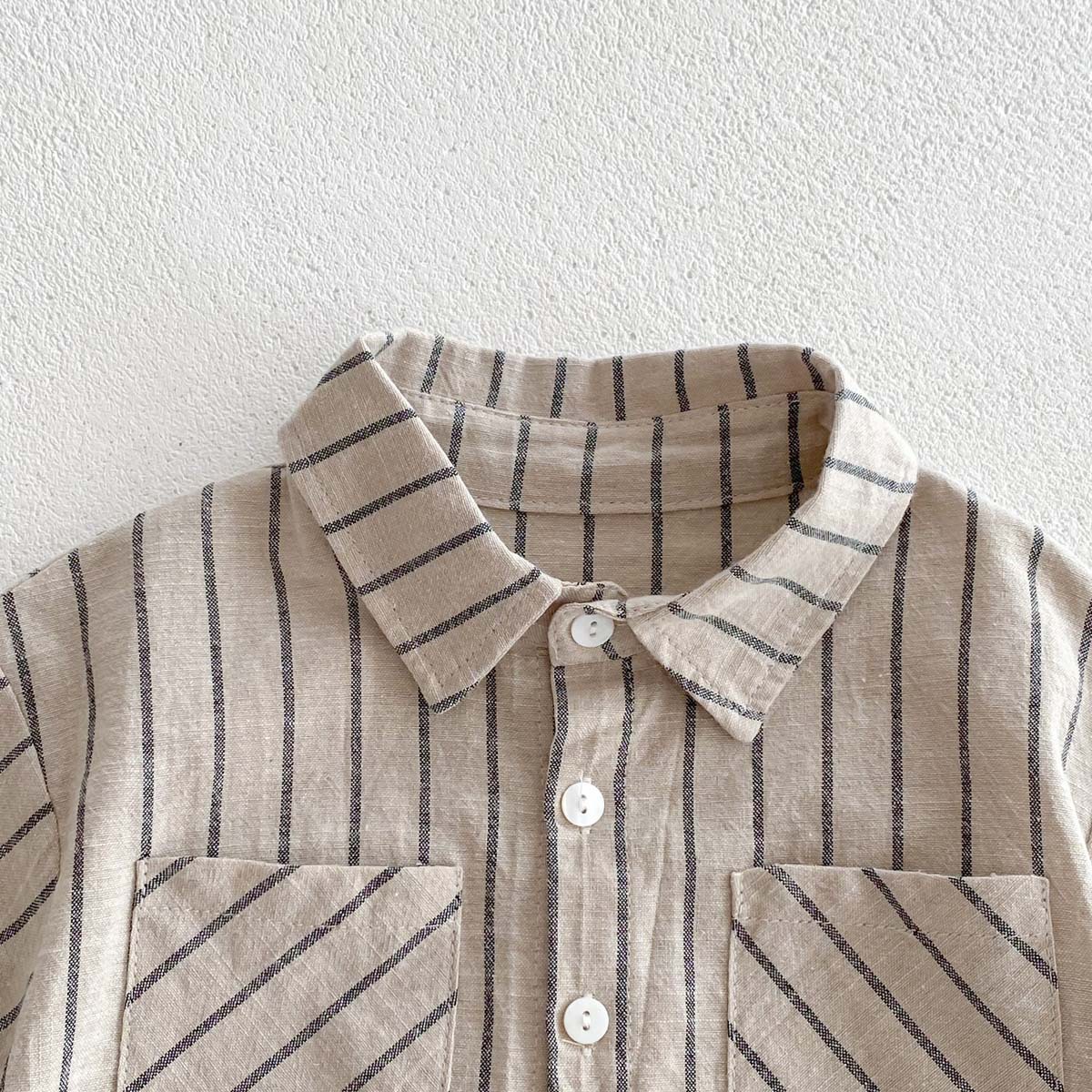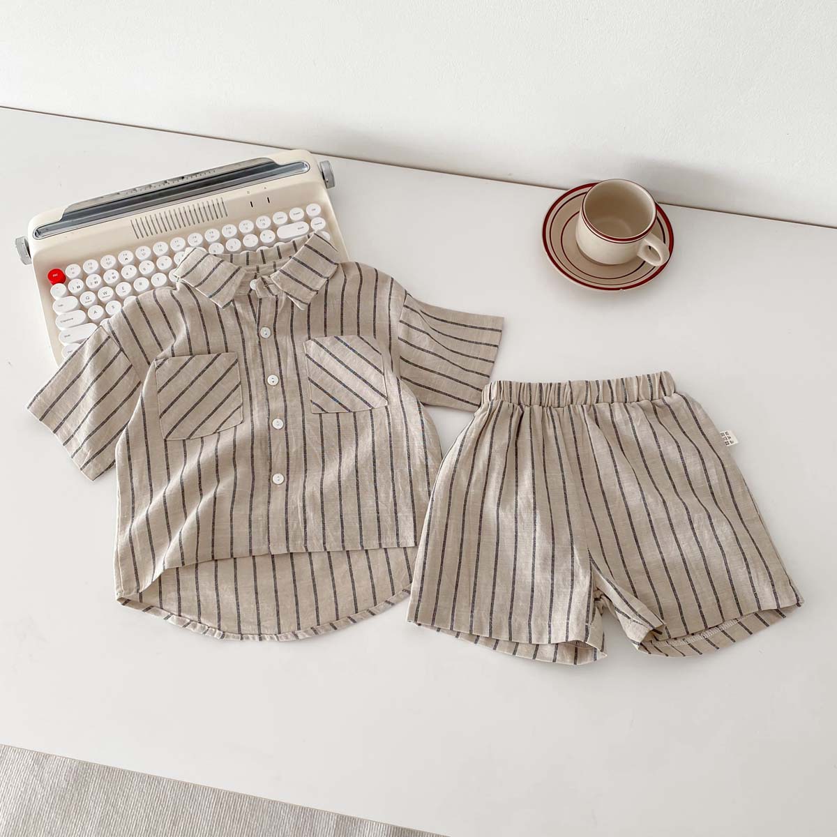 어린이 한국식 레트로 줄무늬 반팔 반바지 세트 아기 소년과 소녀 여름 얇은 캐주얼 트렌디 옷