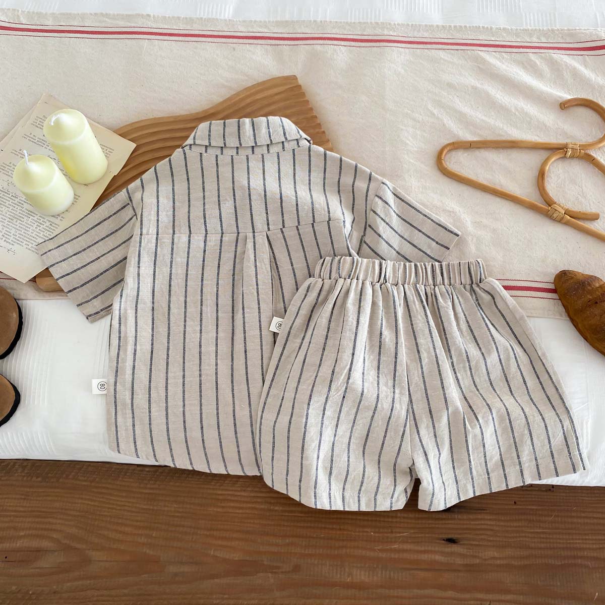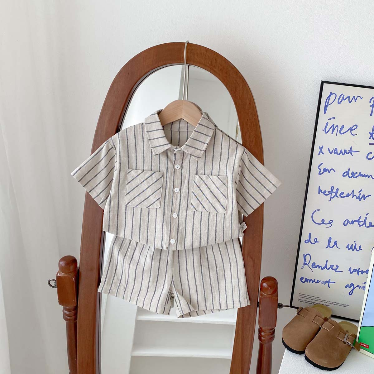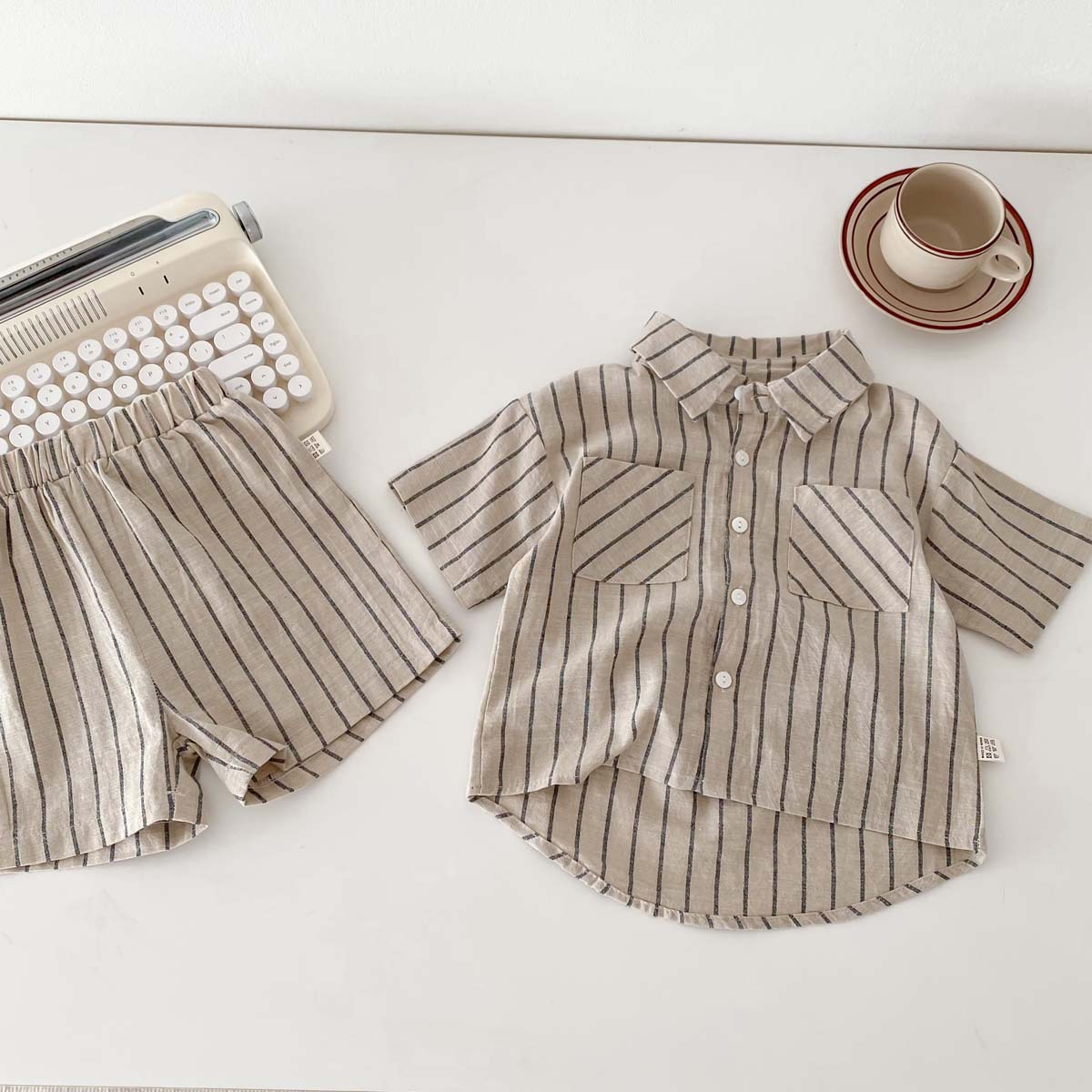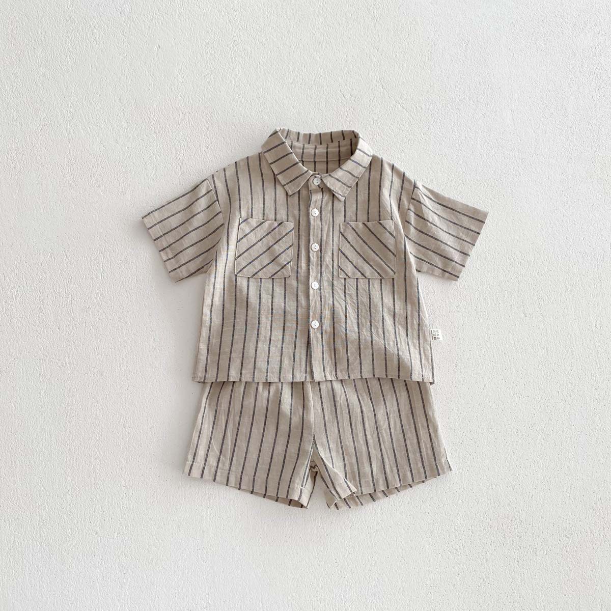 어린이 한국식 레트로 줄무늬 반팔 반바지 세트 아기 소년과 소녀 여름 얇은 캐주얼 트렌디 옷스토어 가기