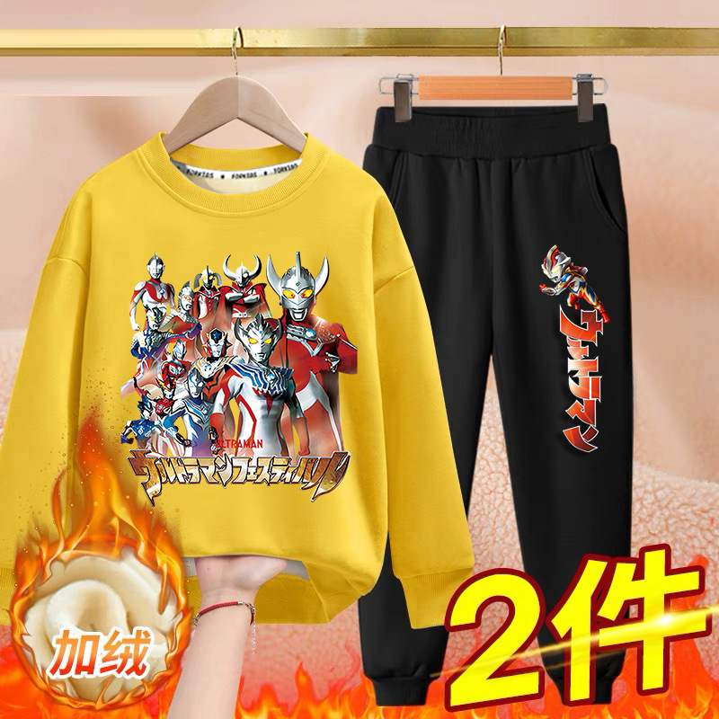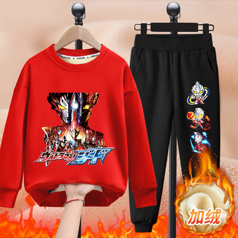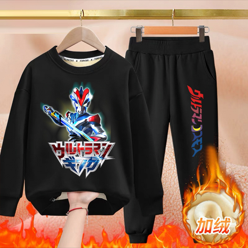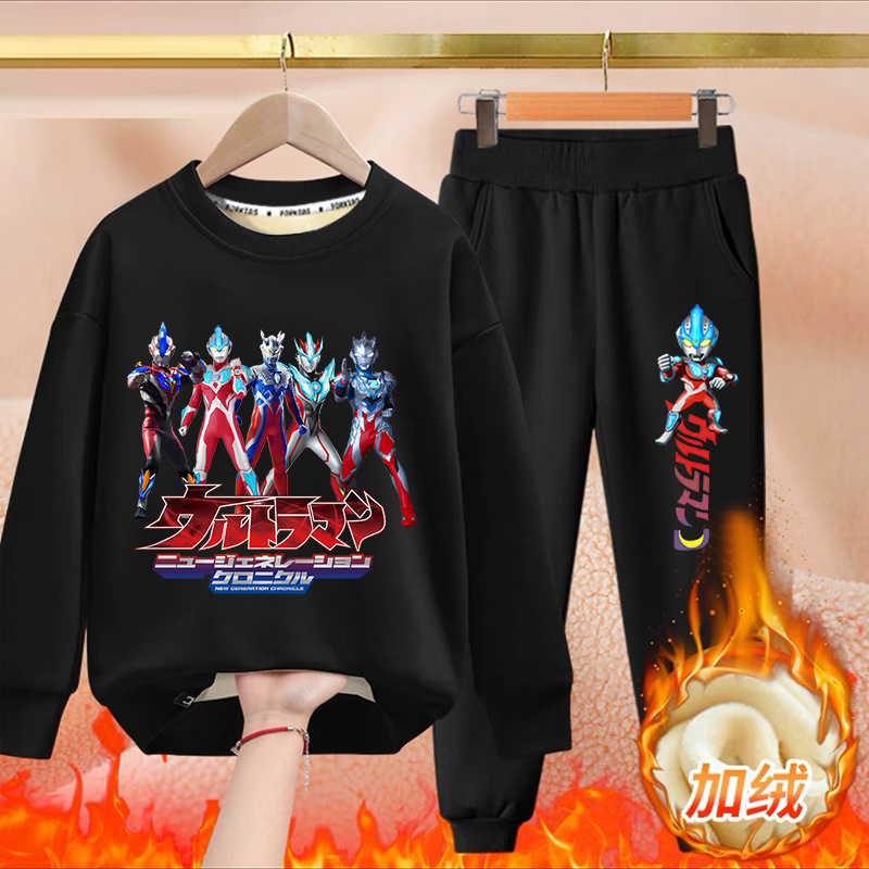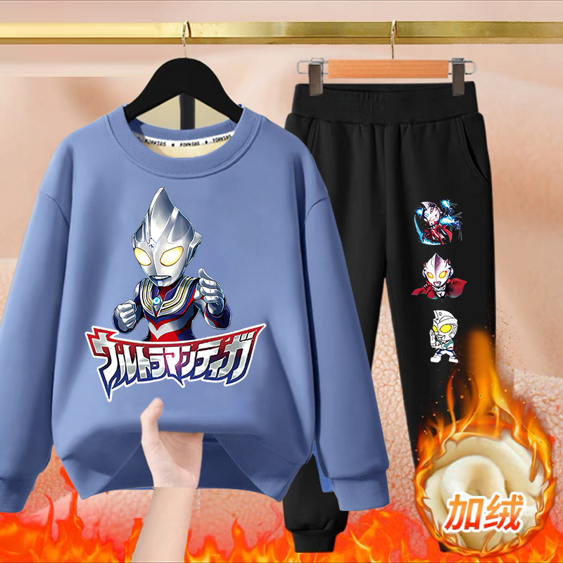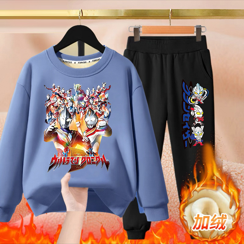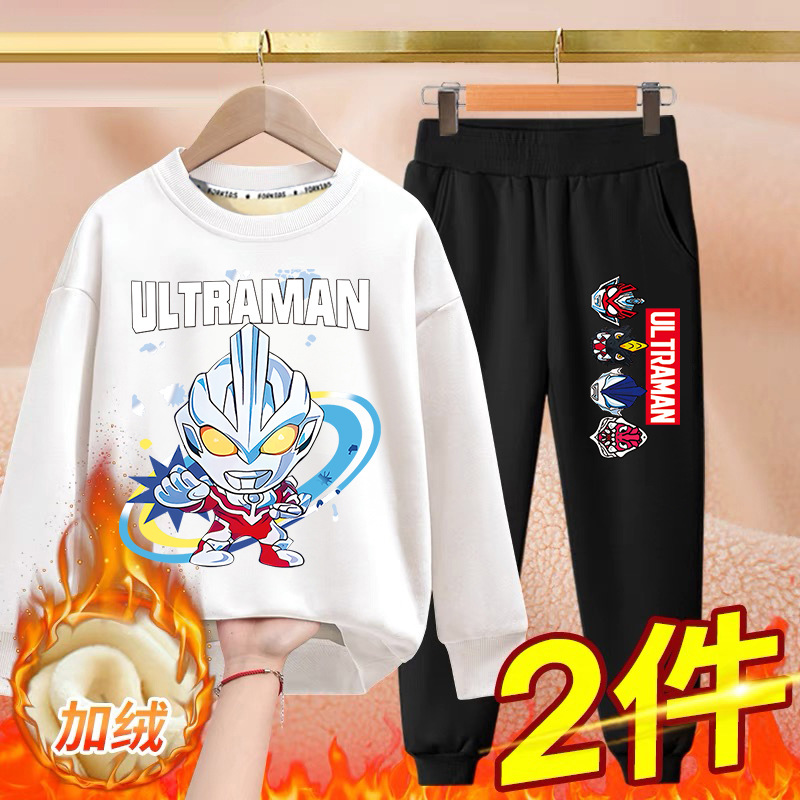 울트라맨 남아용 플리스 스웨트셔츠 세트 겨울용 플리스 2025 신상 아동용 스웨트팬츠 운동복 투피스 세트스토어 가기