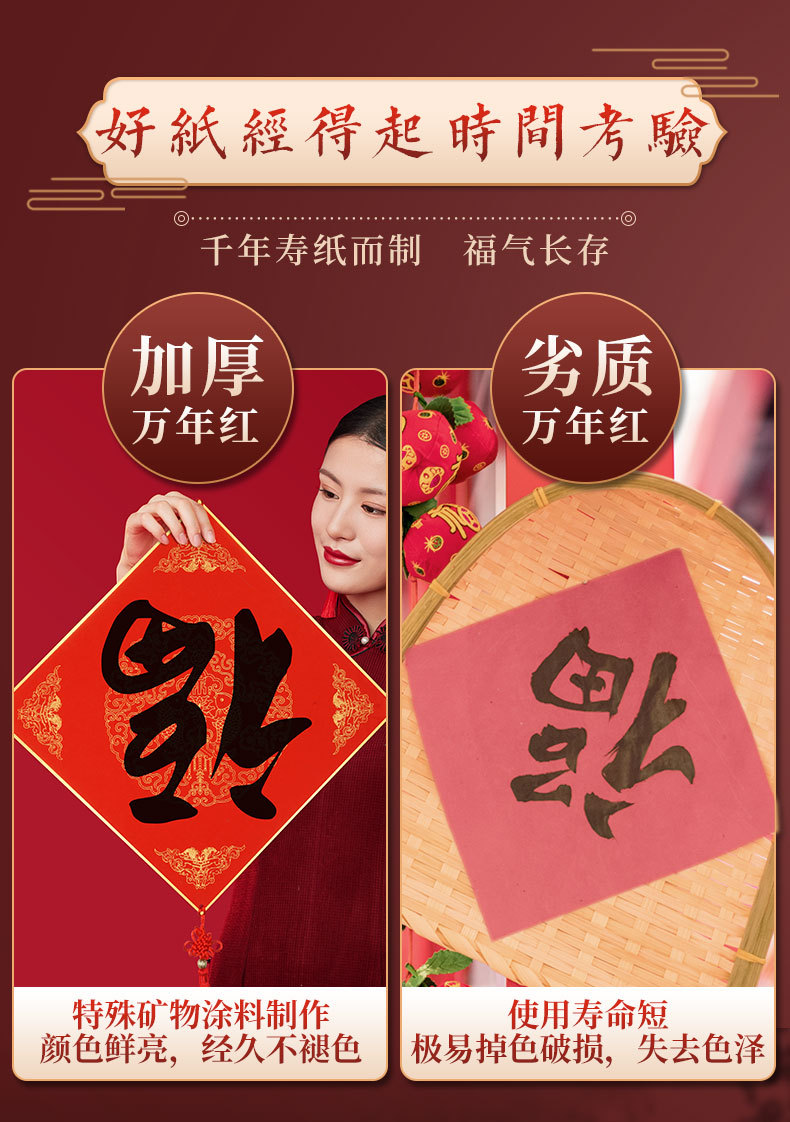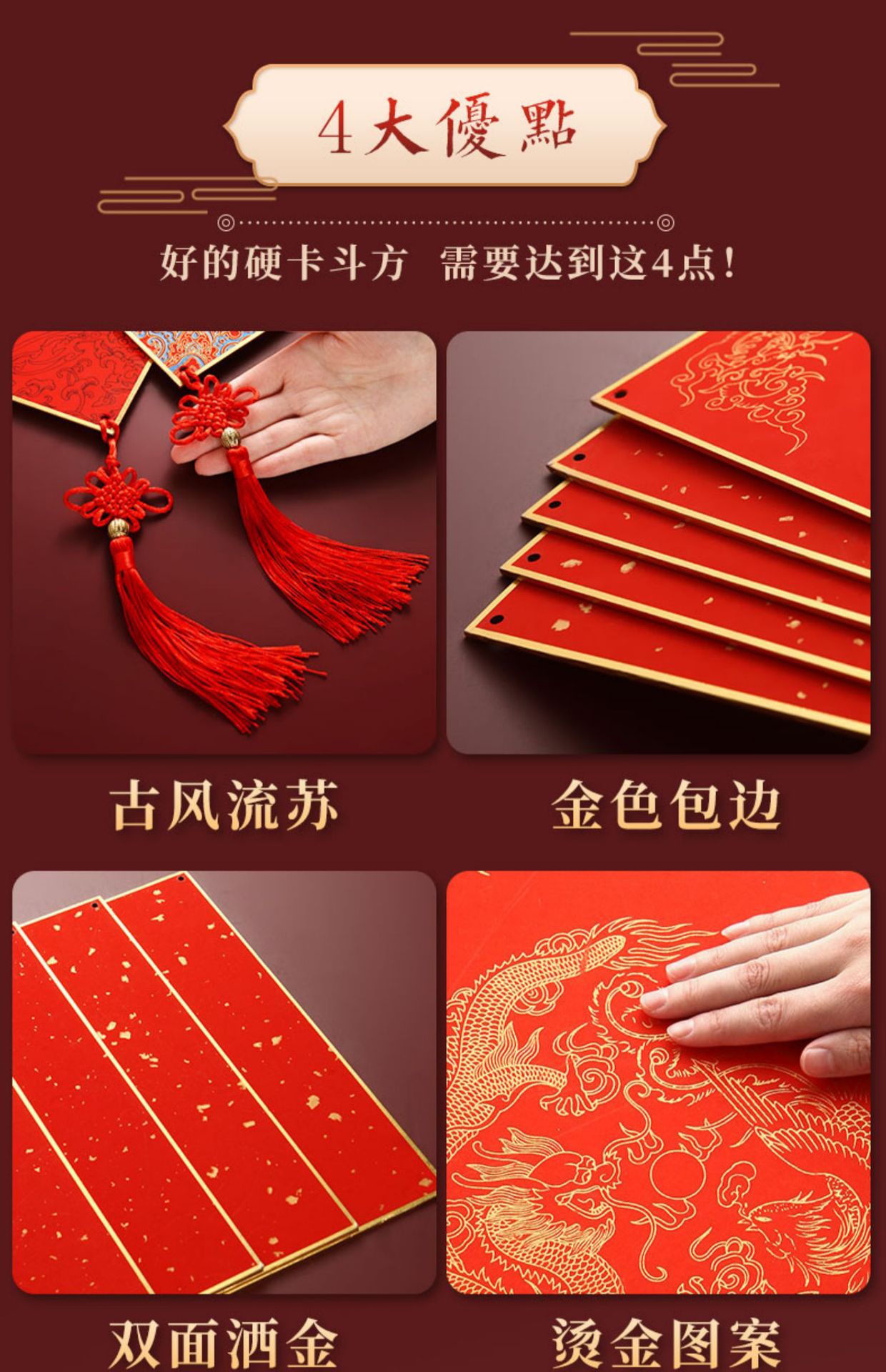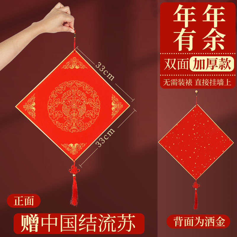 万年红对联纸加厚金边福字斗方福卡宣纸中国结挂件空白手写春联
