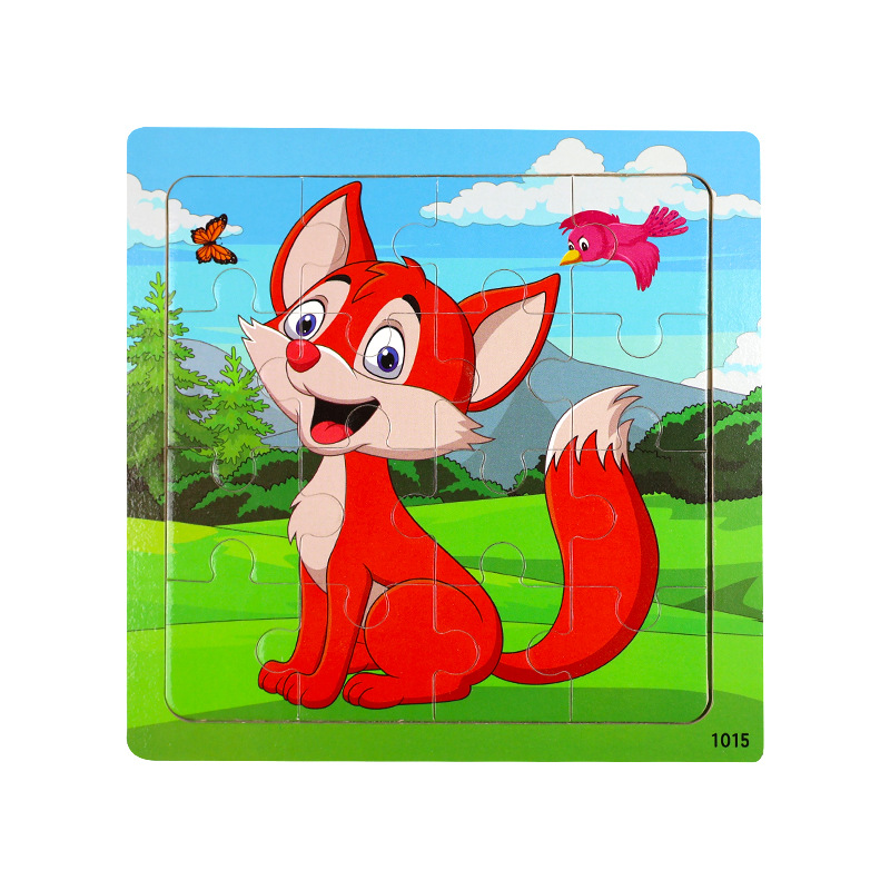 나무 16 조각 퍼즐 어린이 동물 공룡 만화 나무 평면 퍼즐 아기 조기 교육 장난감