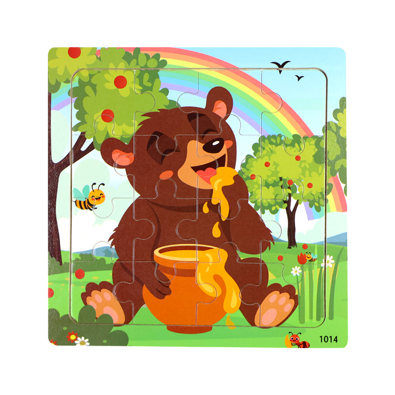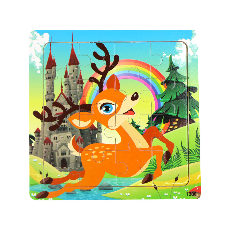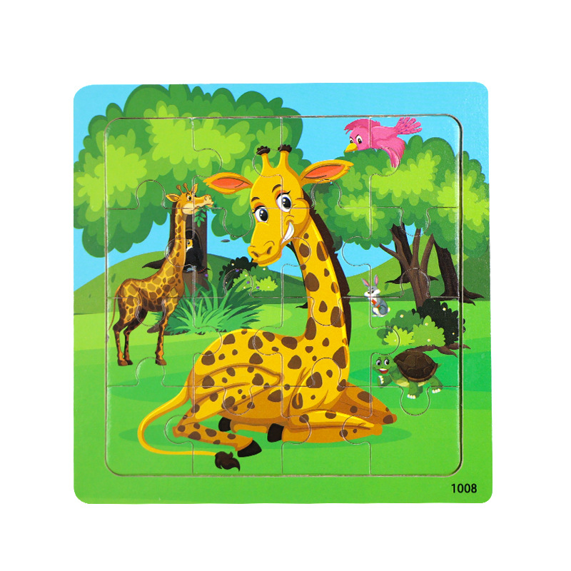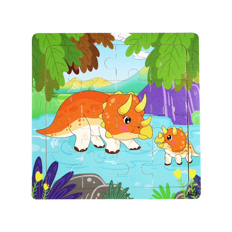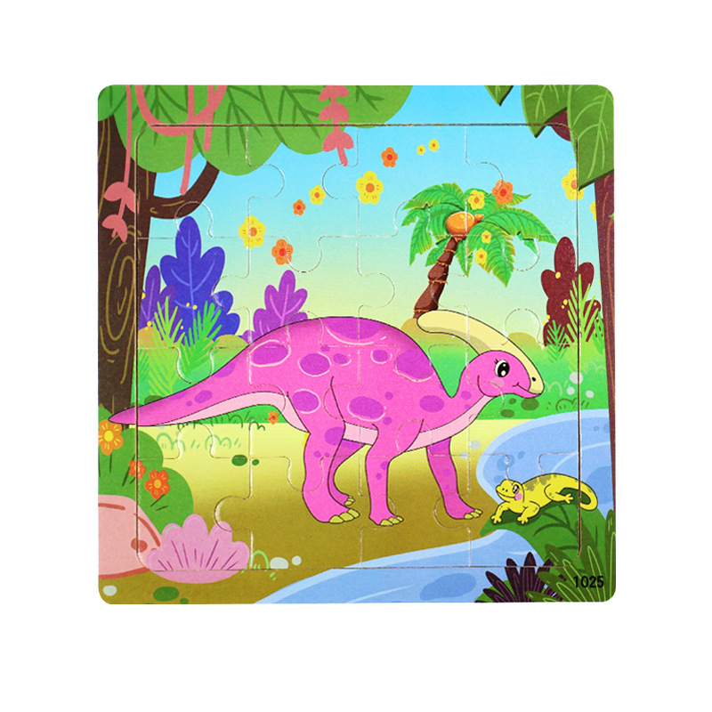 나무 16 조각 퍼즐 어린이 동물 공룡 만화 나무 평면 퍼즐 아기 조기 교육 장난감스토어 가기