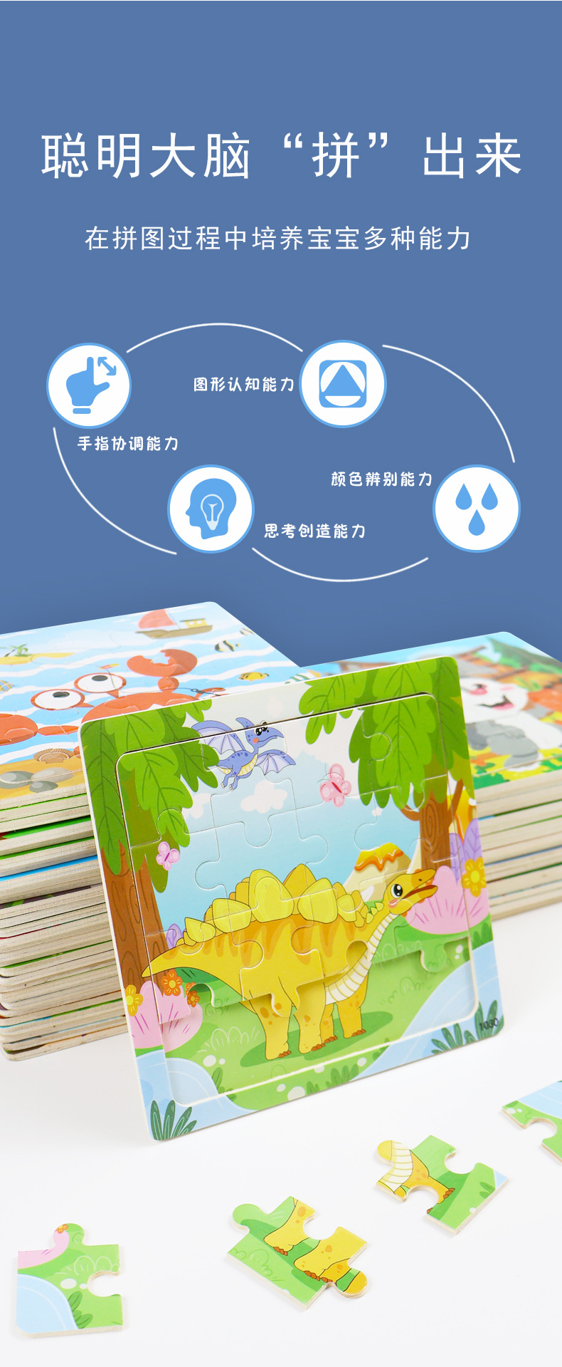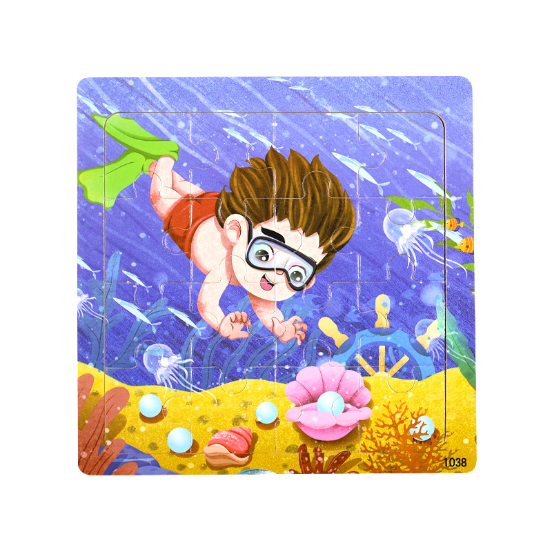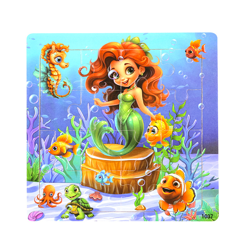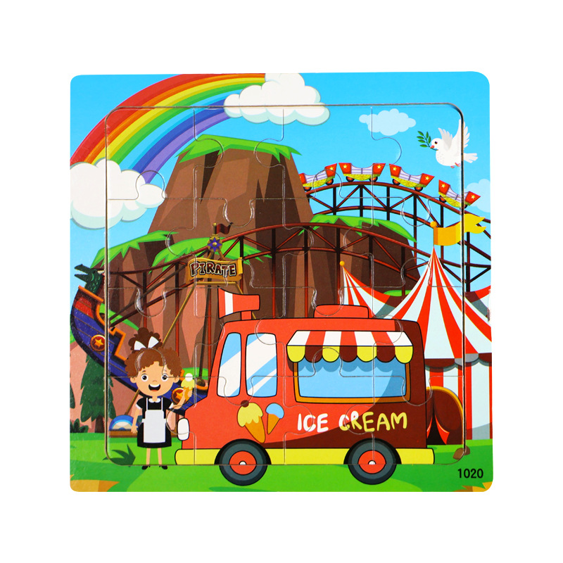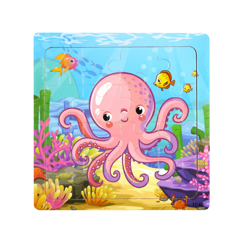 나무 16 조각 퍼즐 어린이 동물 공룡 만화 나무 평면 퍼즐 아기 조기 교육 장난감스토어 가기