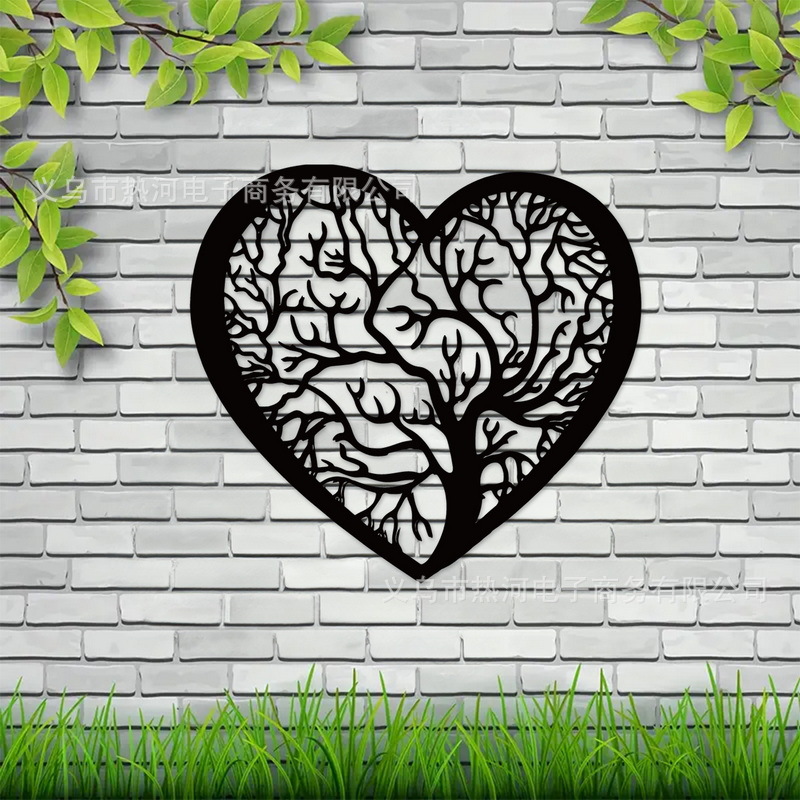 가정 침실 거실을 위한 심장 모양의 나무 검은 금속 철 예술 가정 벽 장식