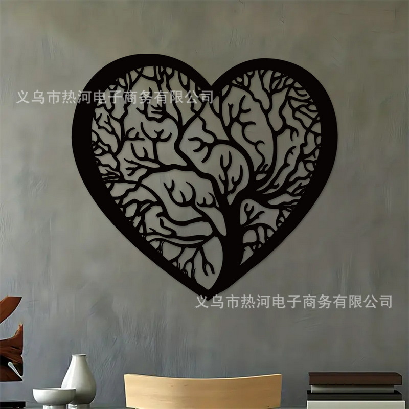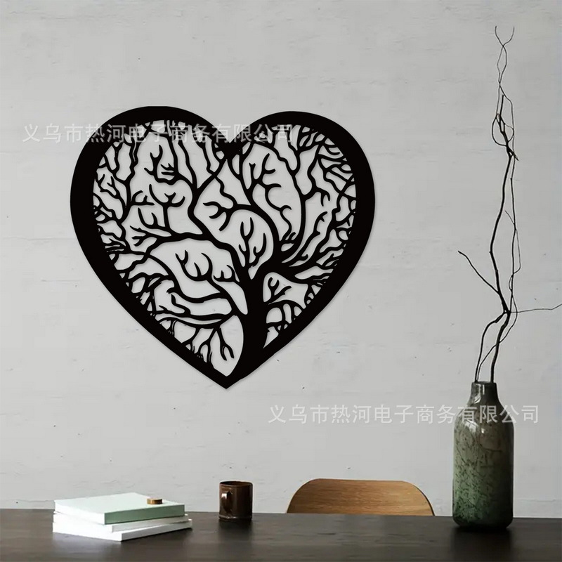 가정 침실 거실을 위한 심장 모양의 나무 검은 금속 철 예술 가정 벽 장식스토어 가기