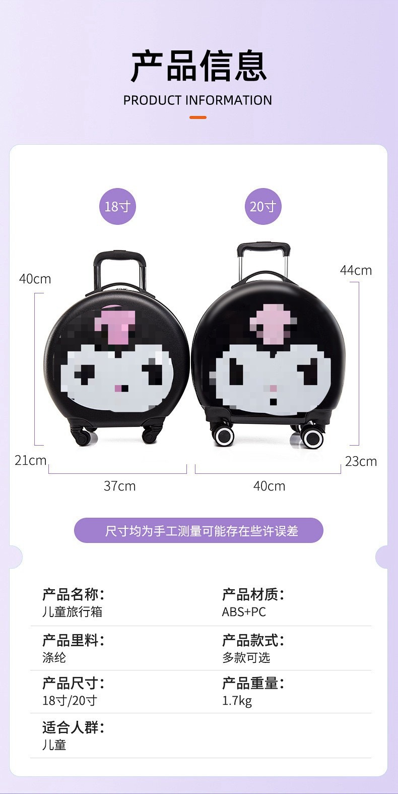 • 라운드 20inch 하이 매칭 해피 쿠로미 [귀 있음]
