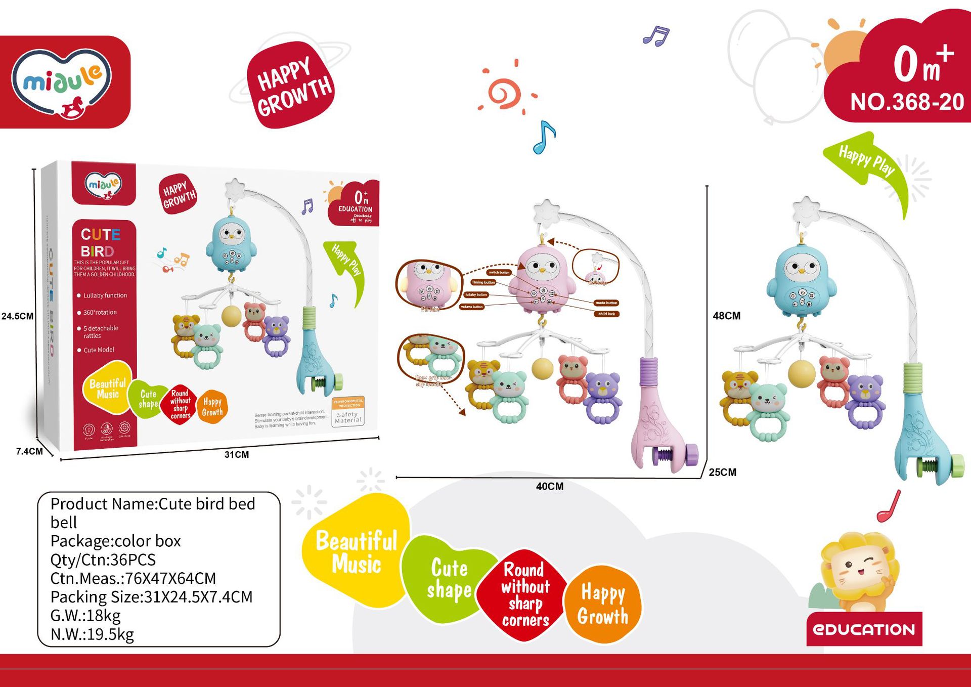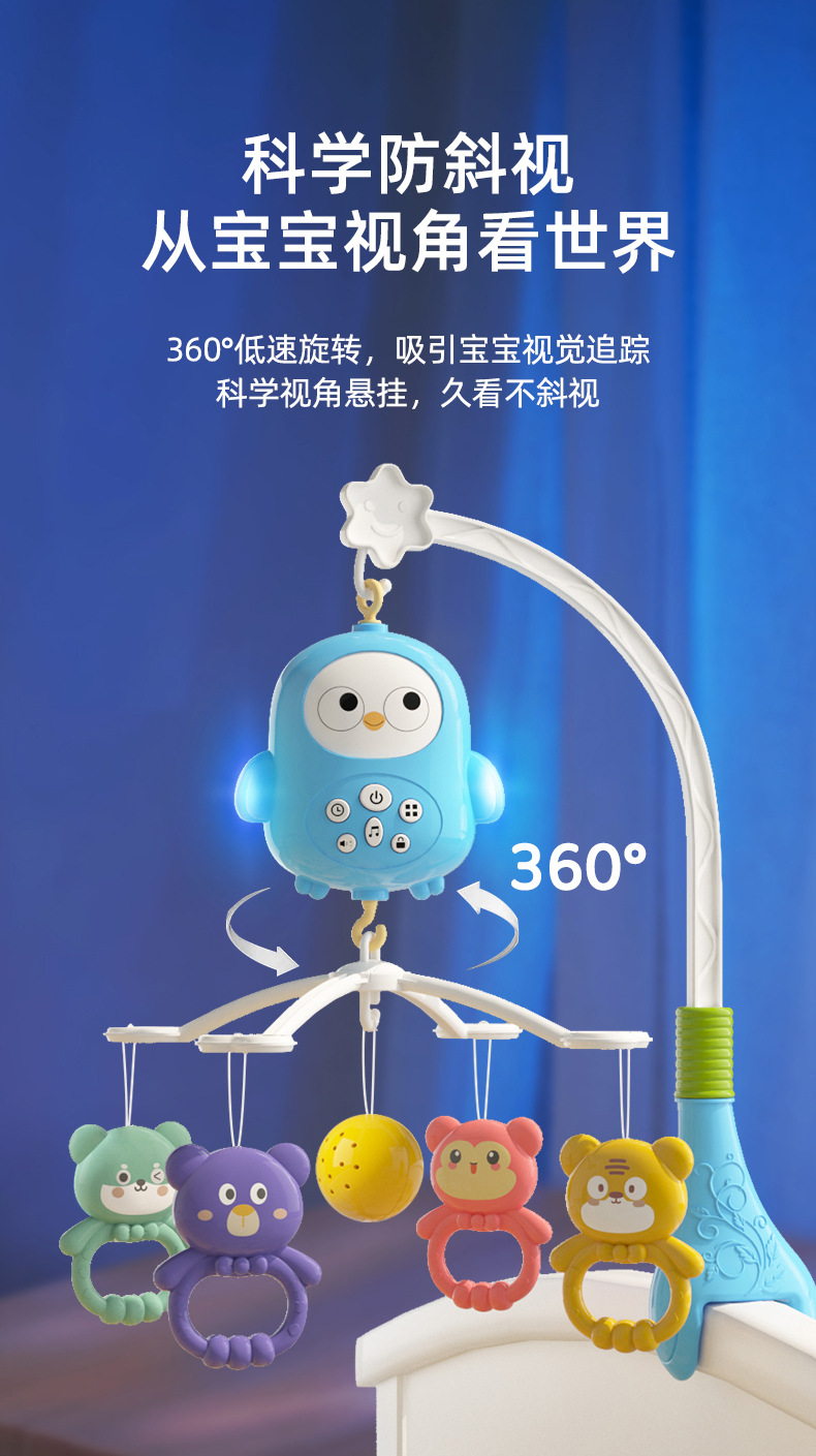 국경 간 유아 음악 회전 딸랑이 신생아 아기 침대 벨 0-12 개월 조기 교육 가벼운 음악 장난감스토어 가기