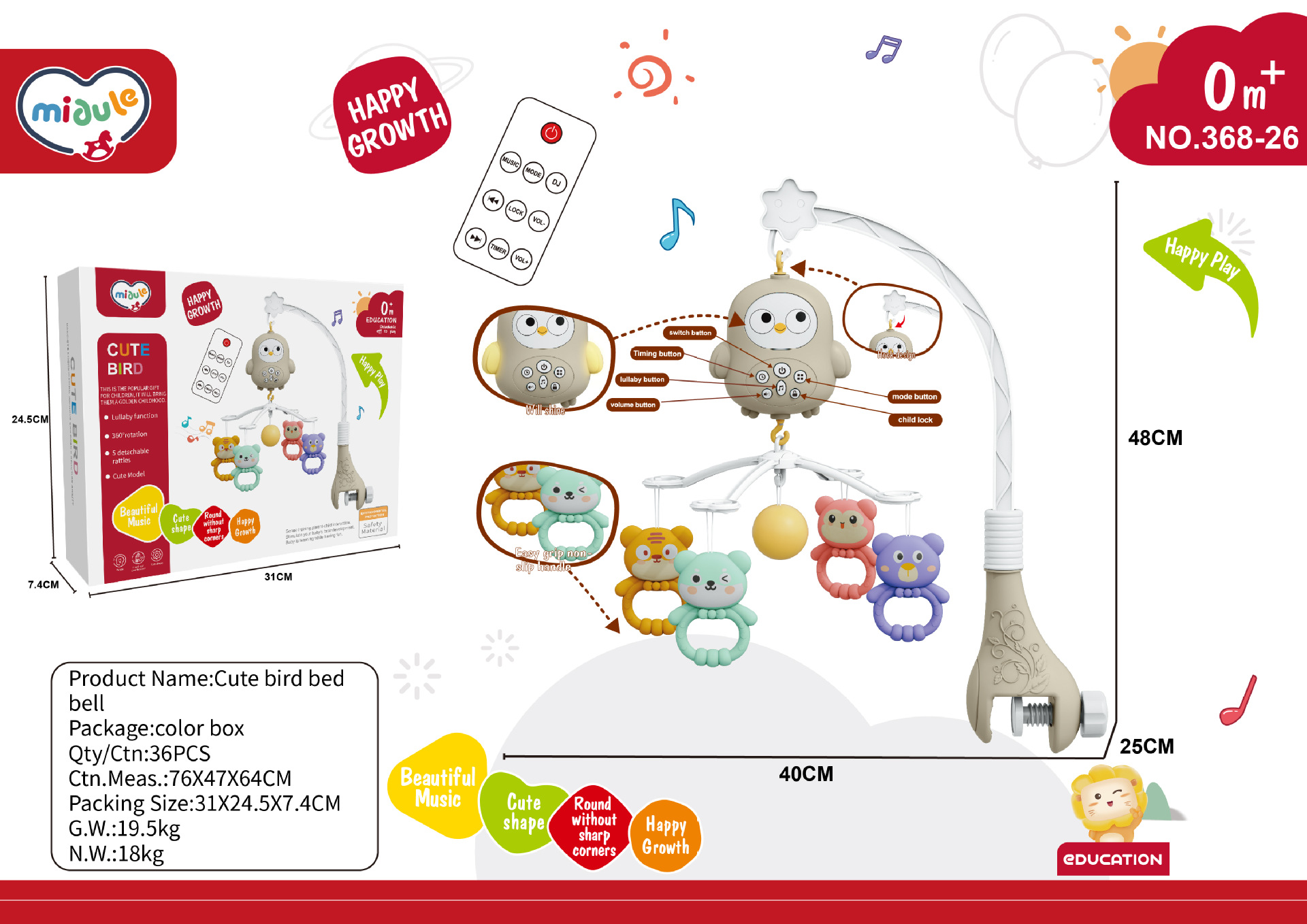 국경 간 유아 음악 회전 딸랑이 신생아 아기 침대 벨 0-12 개월 조기 교육 가벼운 음악 장난감
