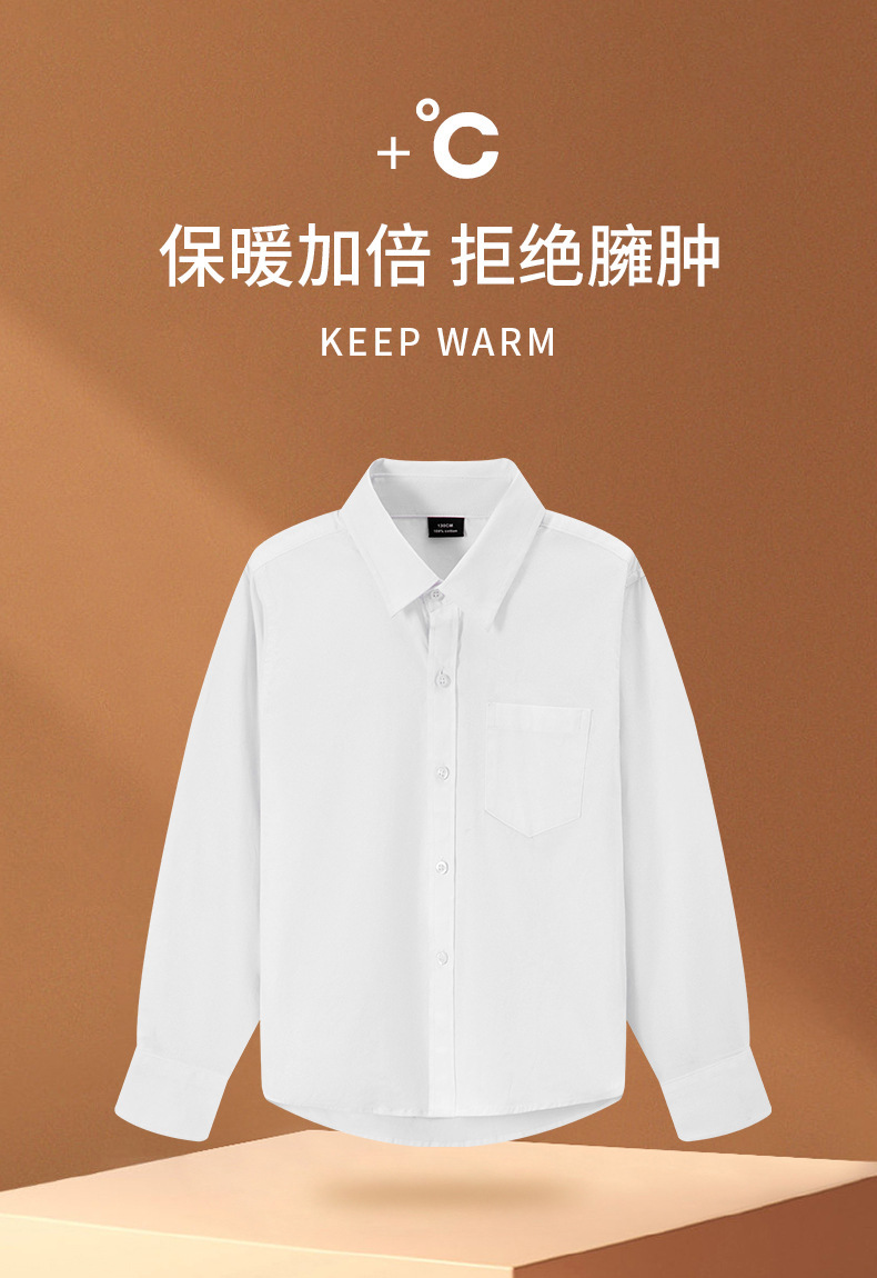 가을과 겨울의 새로운 긴팔 남학생과 여학생 기모 두꺼운 흰 셔츠 어린이 공연 아동복 중 큰 어린이 셔츠스토어 가기