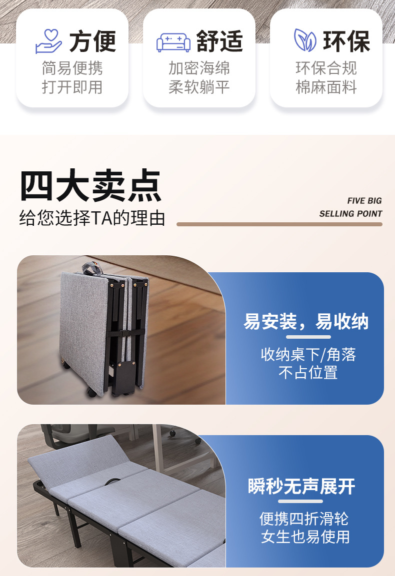 점심 휴식 접이식 침대 싱글 점심 휴식 침대 4 배 접이식 침대 사무실 4 배 침대 학생 소파 3 월 접이식 침대