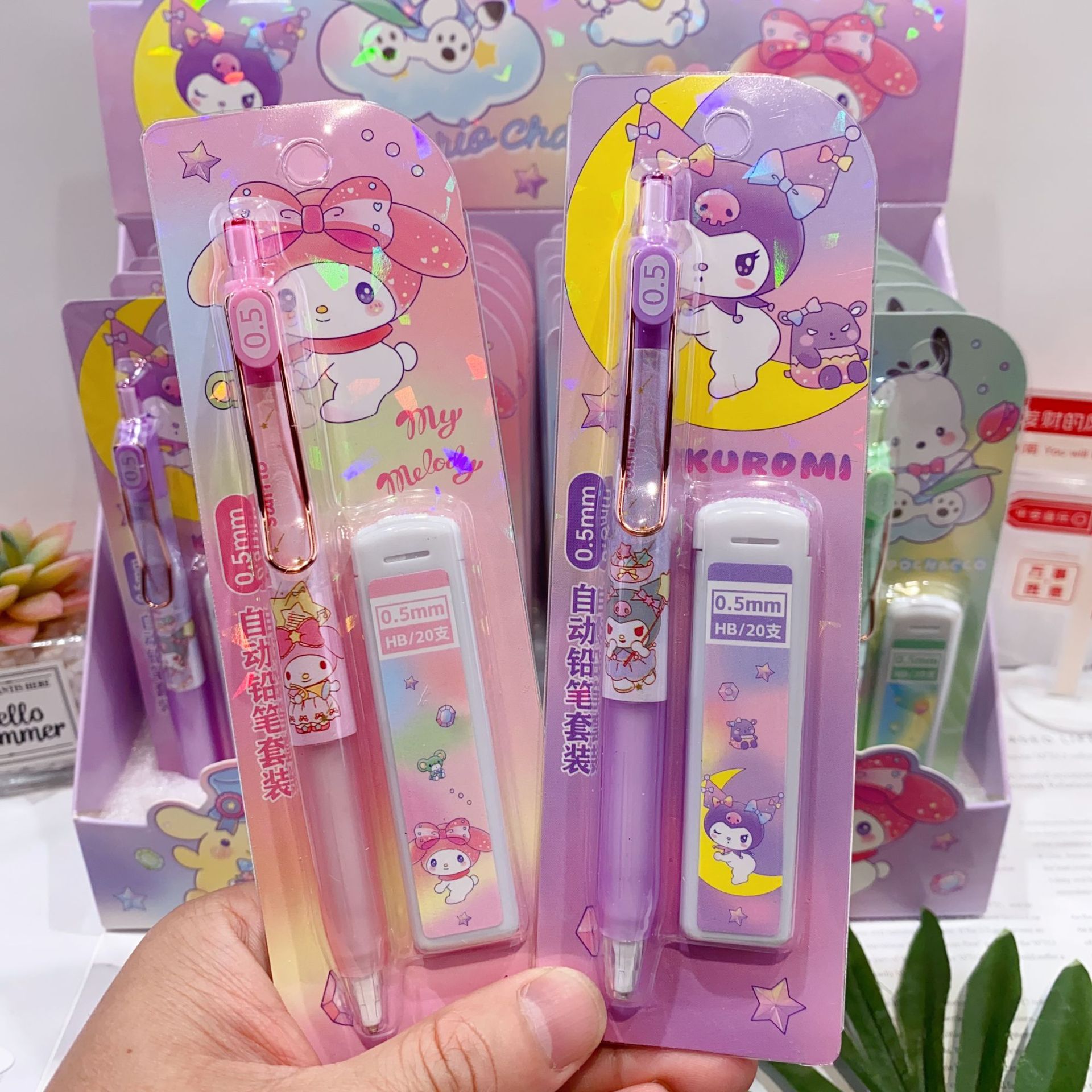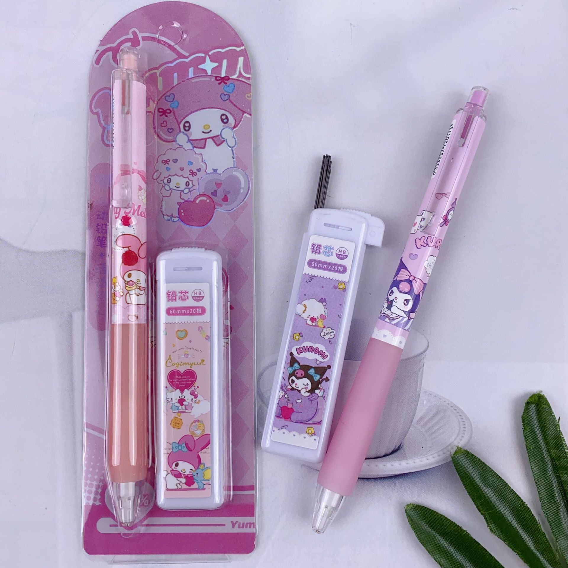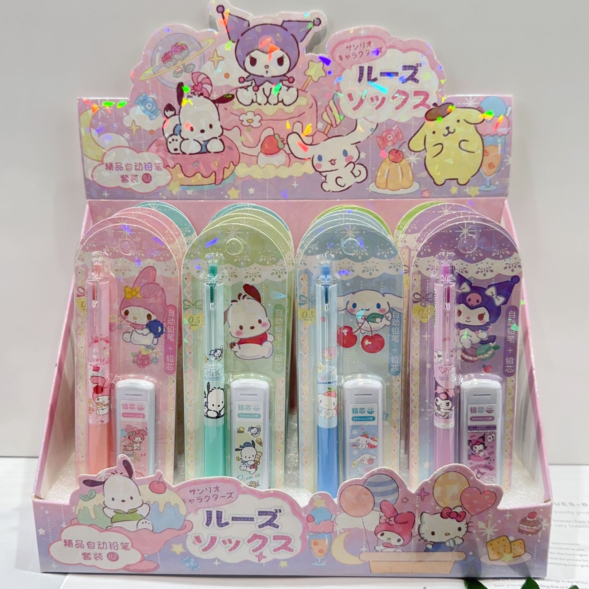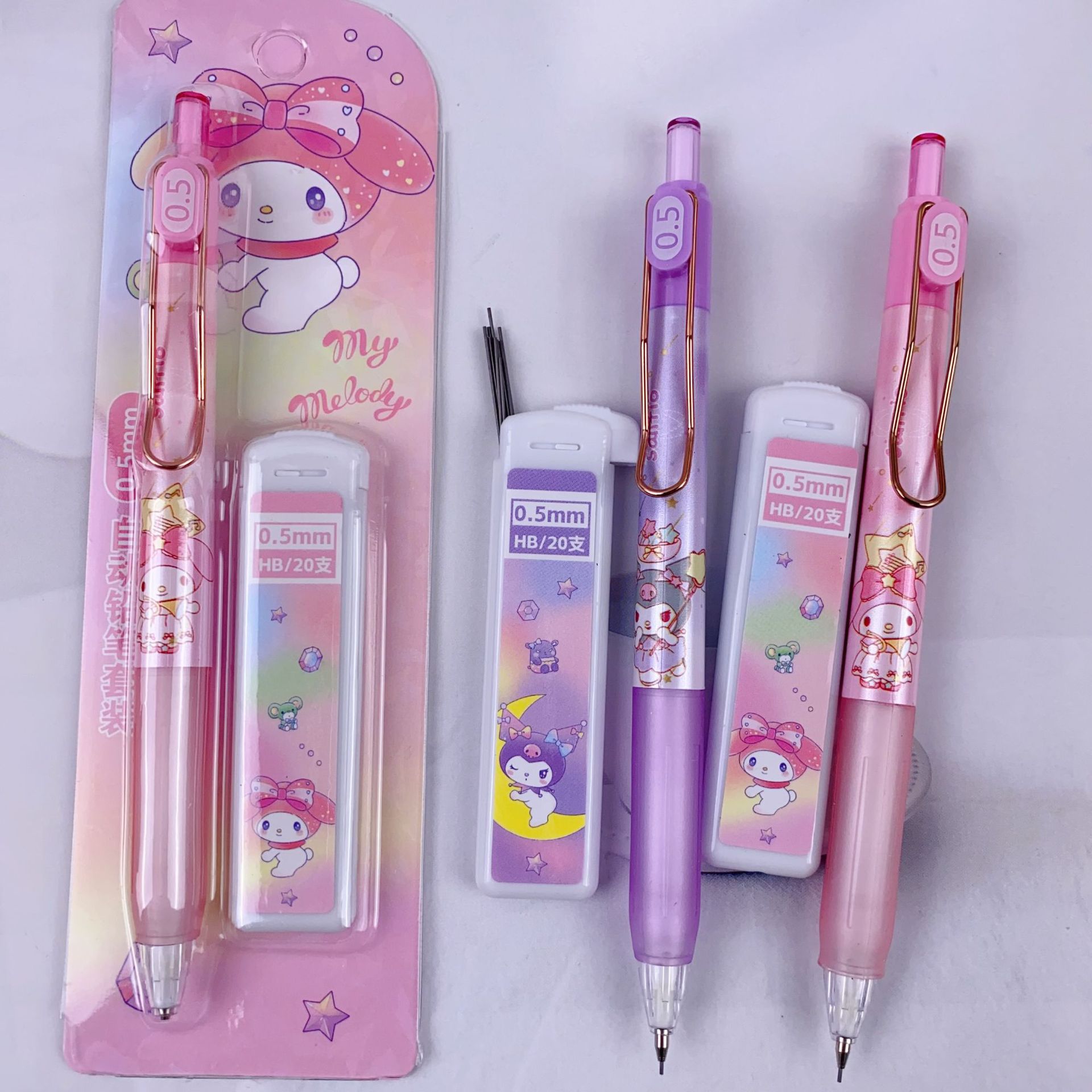 새로운 산리오 활동 연필 세트 귀여운 만화 학생 문구 자동 연필 + 0.5 연필 리드스토어 가기