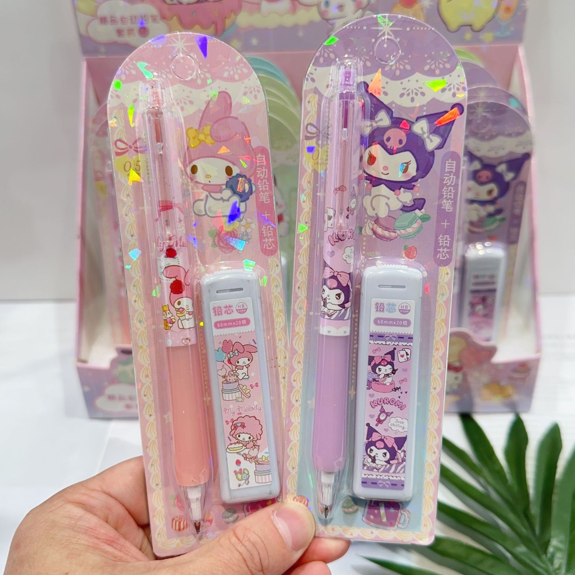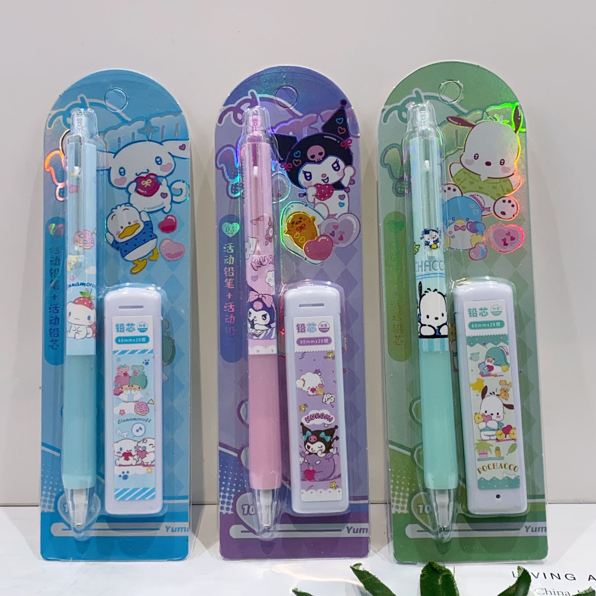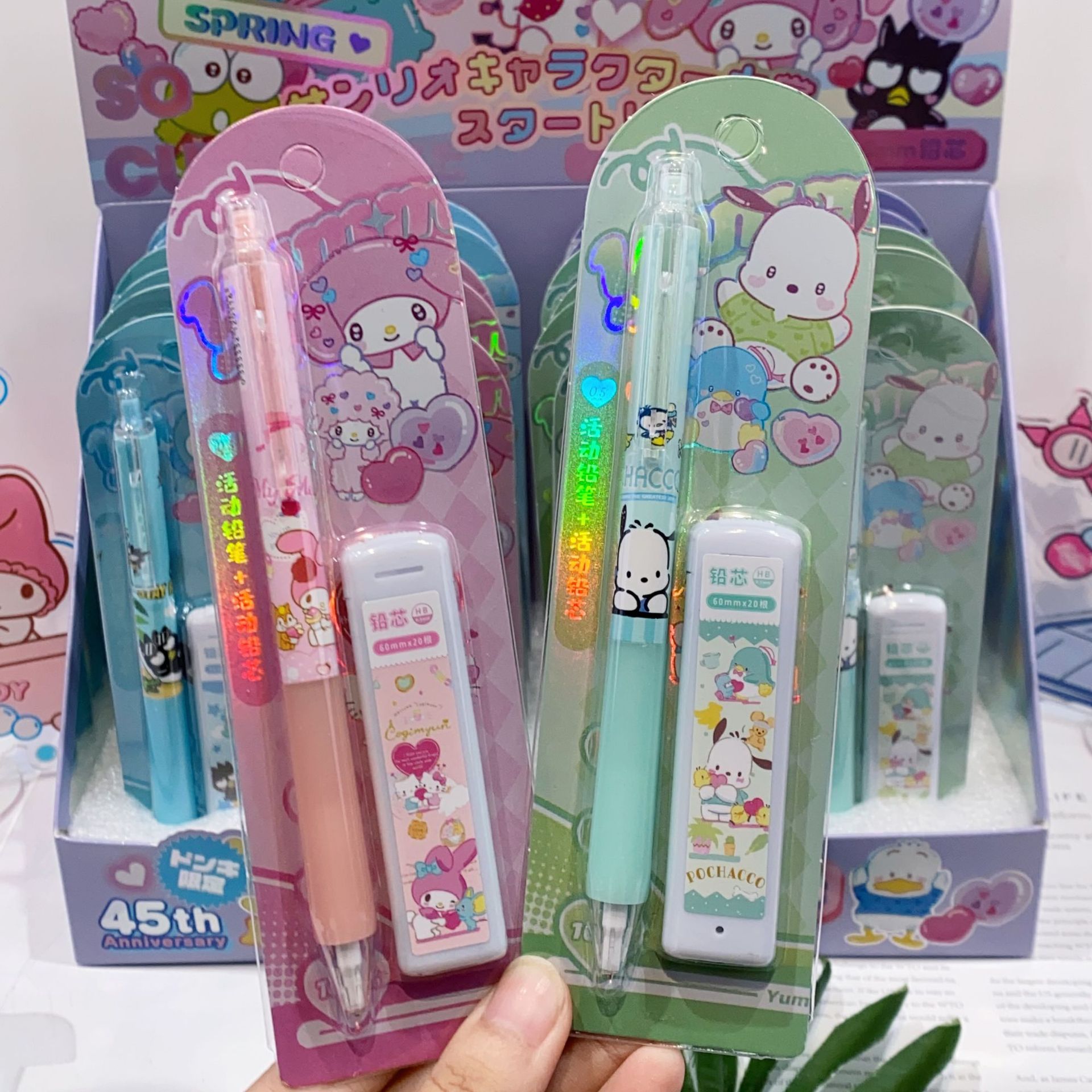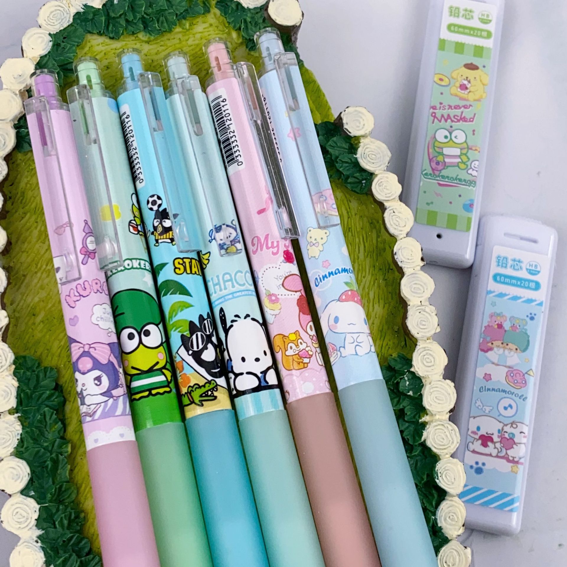 새로운 산리오 활동 연필 세트 귀여운 만화 학생 문구 자동 연필 + 0.5 연필 리드스토어 가기
