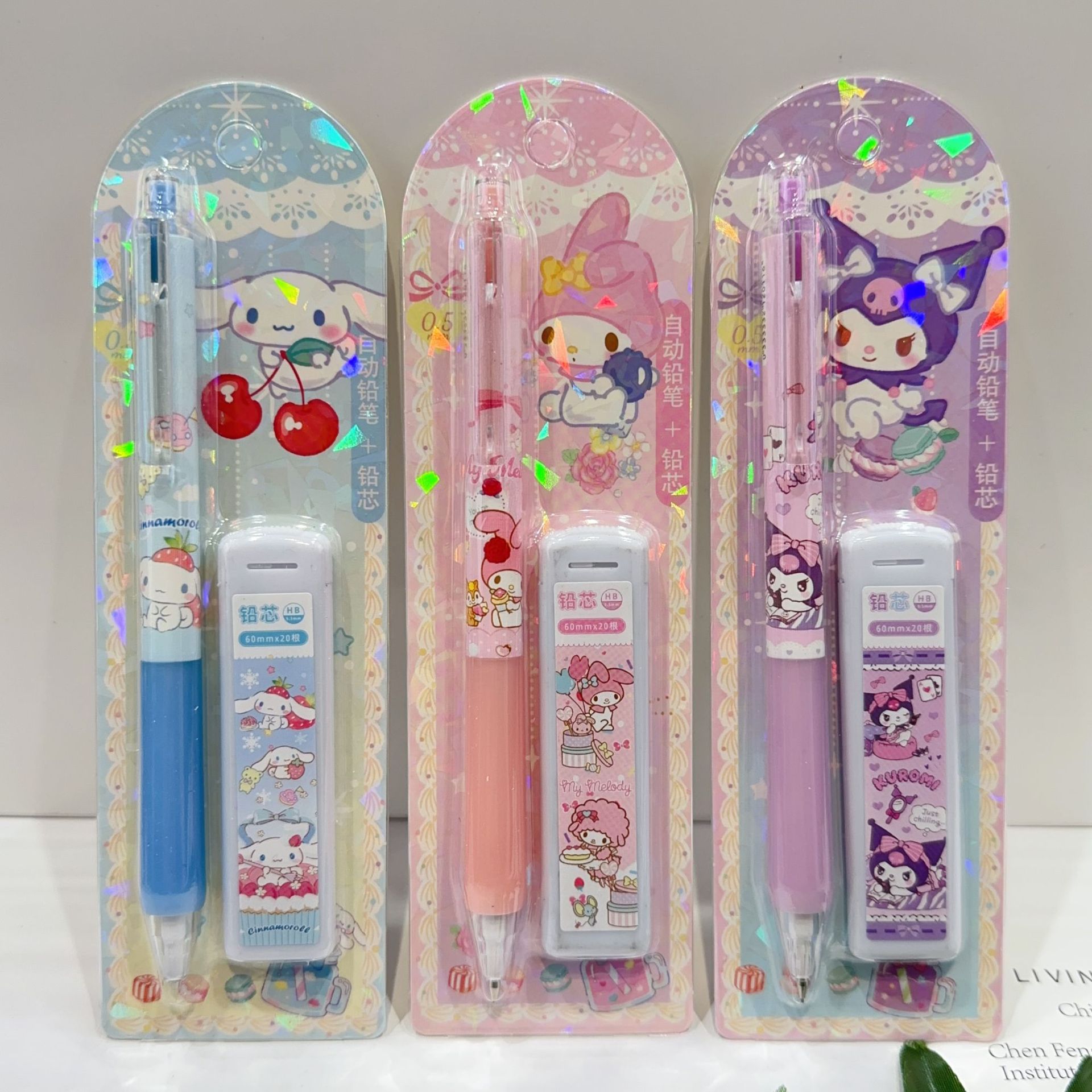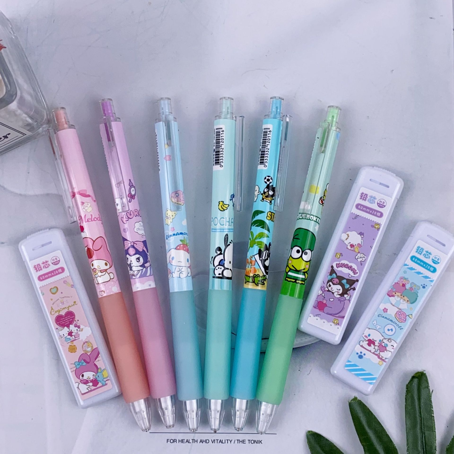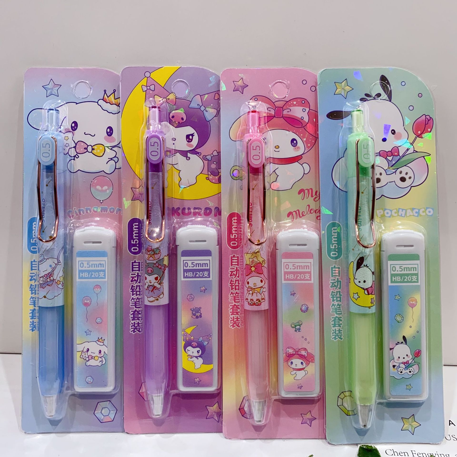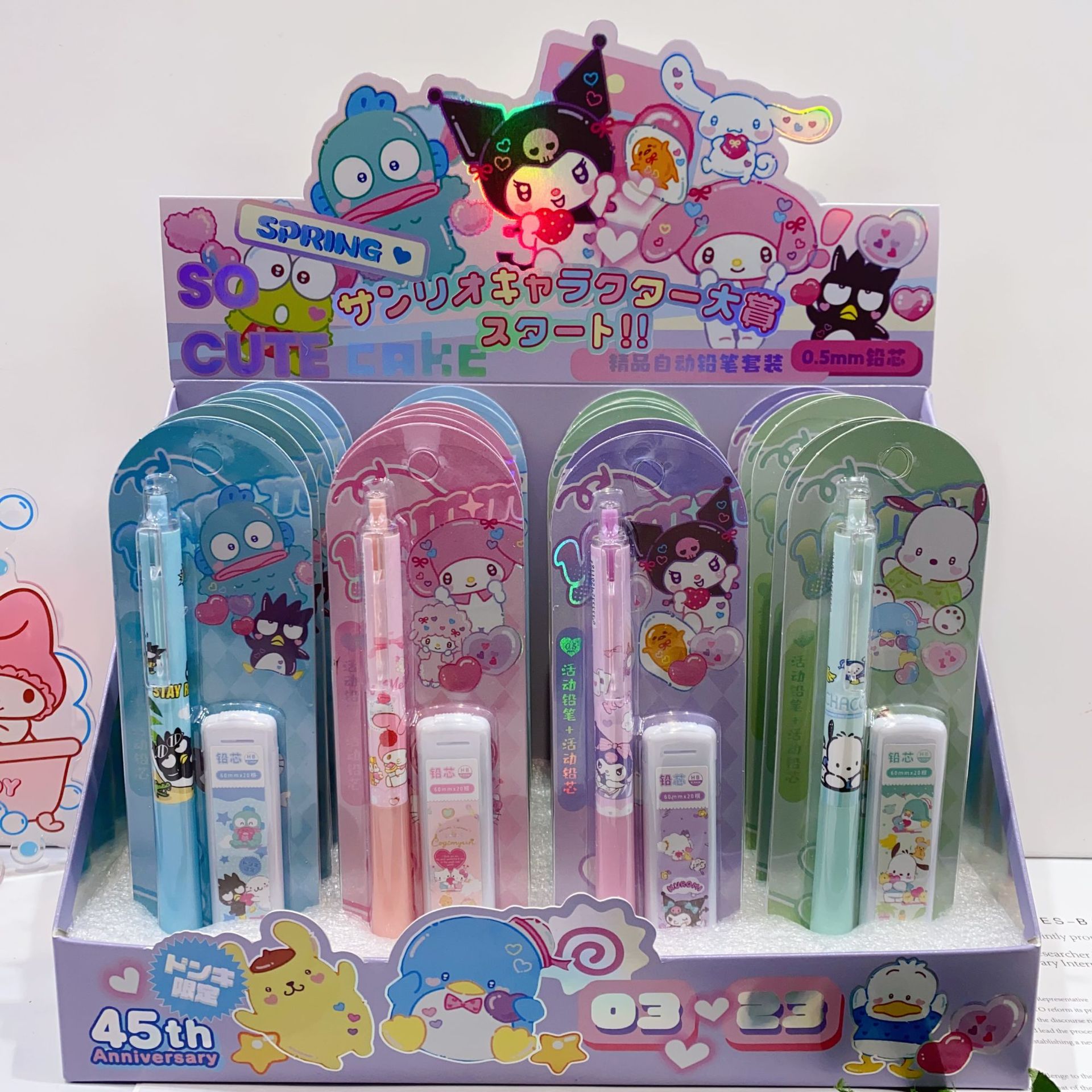 새로운 산리오 활동 연필 세트 귀여운 만화 학생 문구 자동 연필 + 0.5 연필 리드스토어 가기