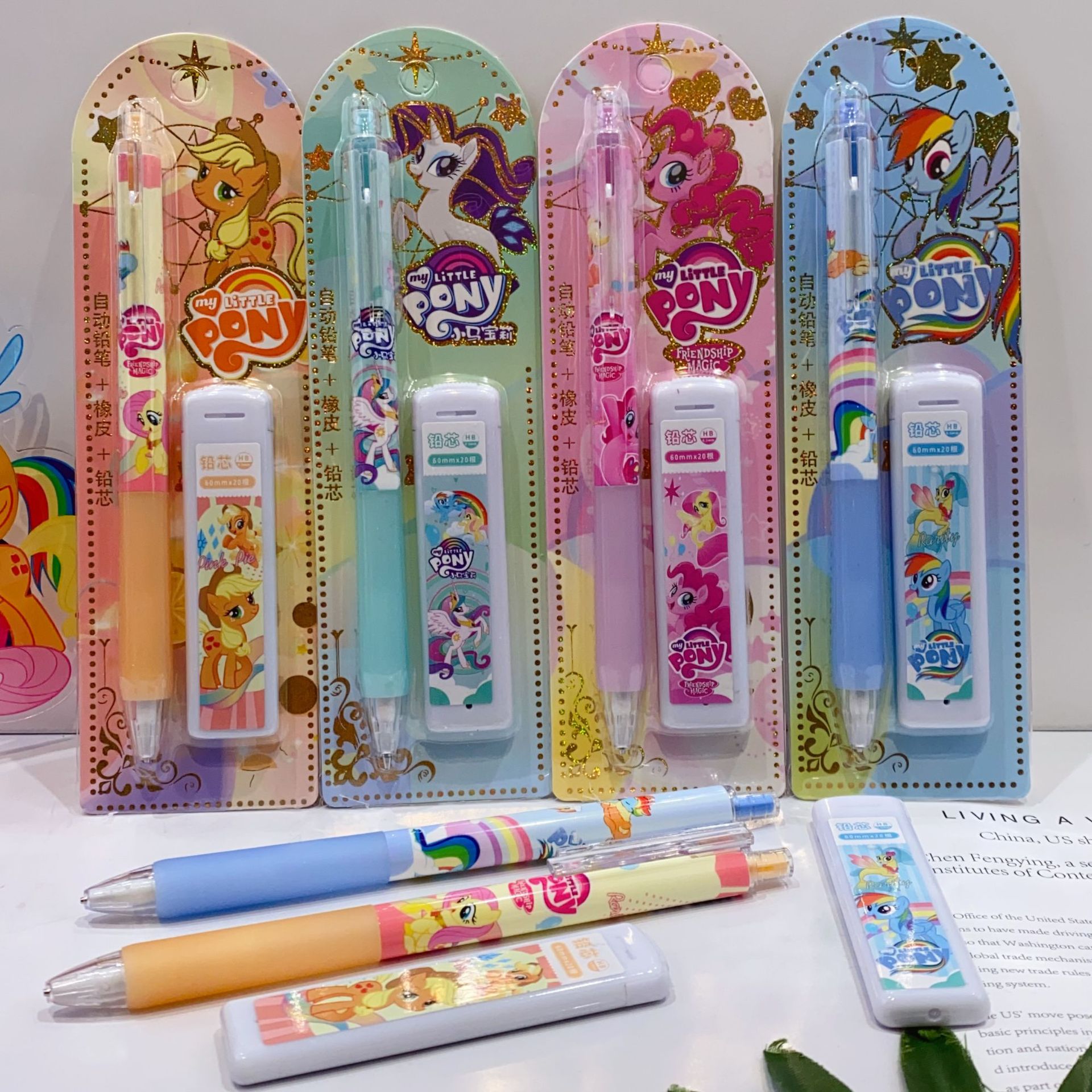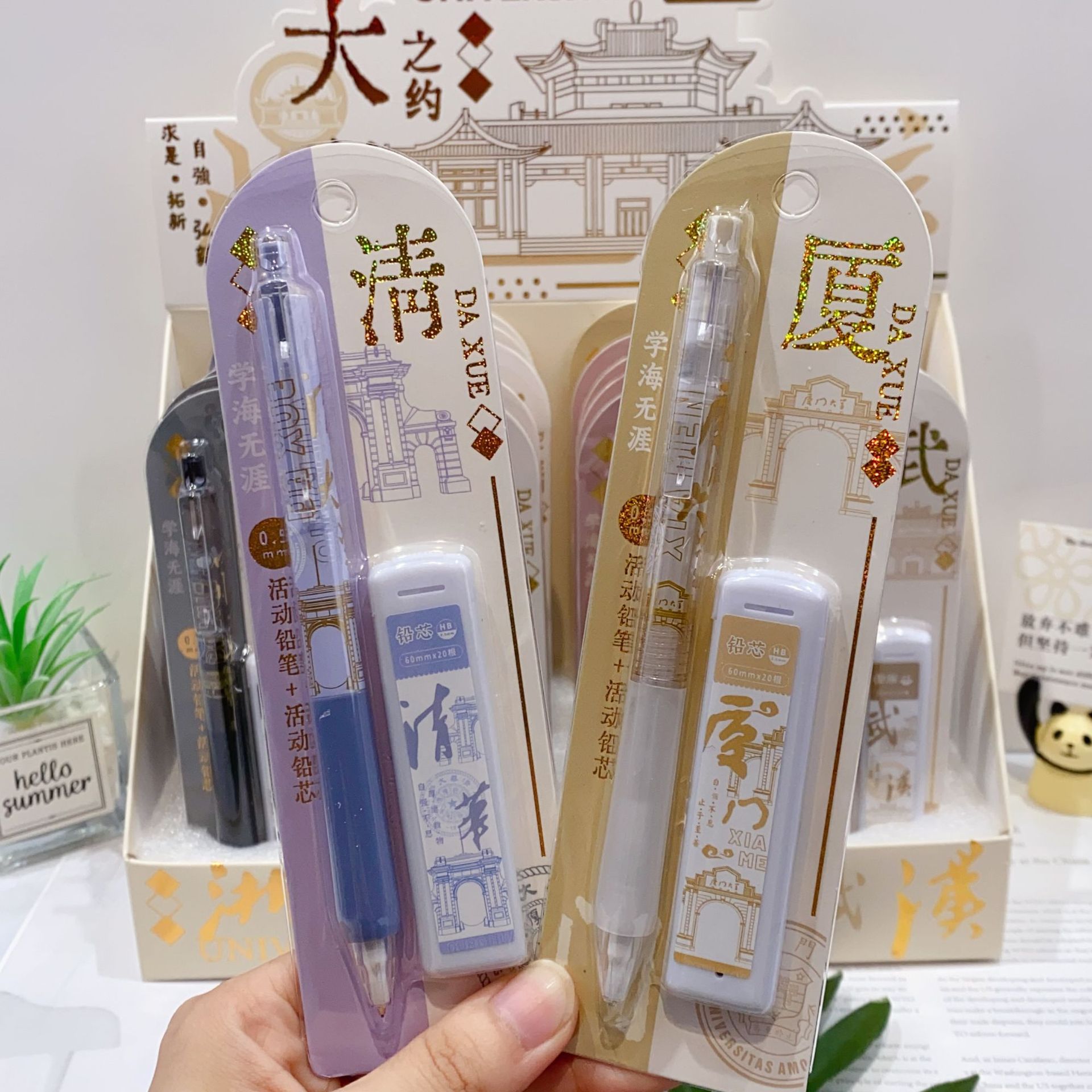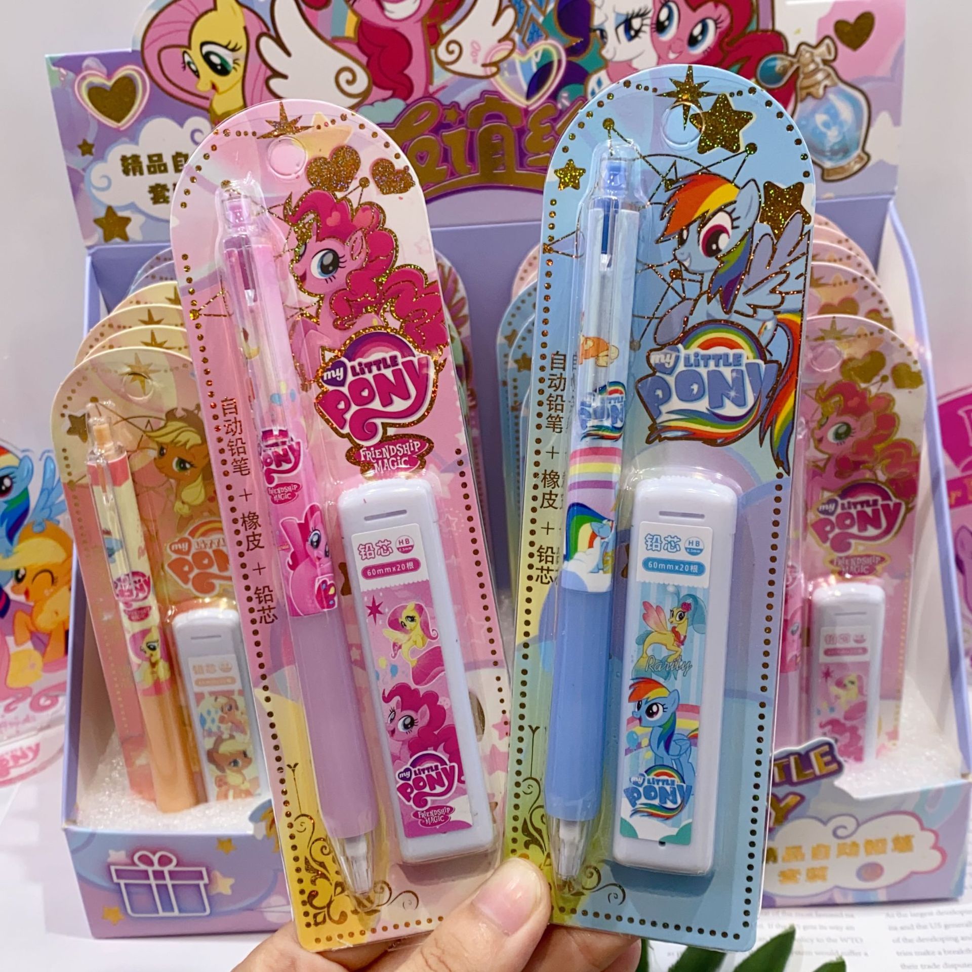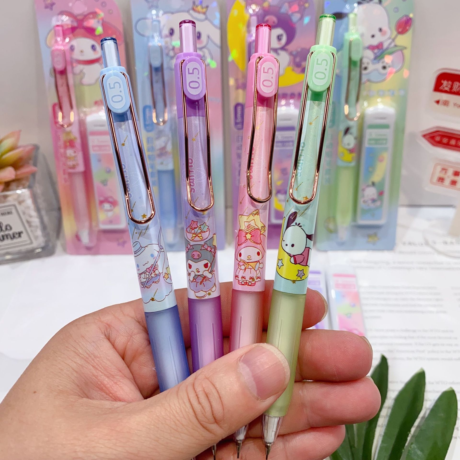 새로운 산리오 활동 연필 세트 귀여운 만화 학생 문구 자동 연필 + 0.5 연필 리드스토어 가기