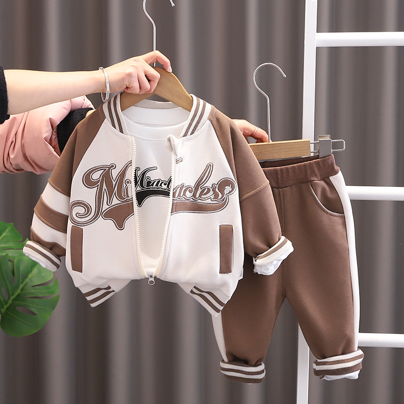 2024 봄 아동복 긴팔 스포츠 소년 봄 야구 유니폼 3 피스 어린이 세트 유행 배달스토어 가기