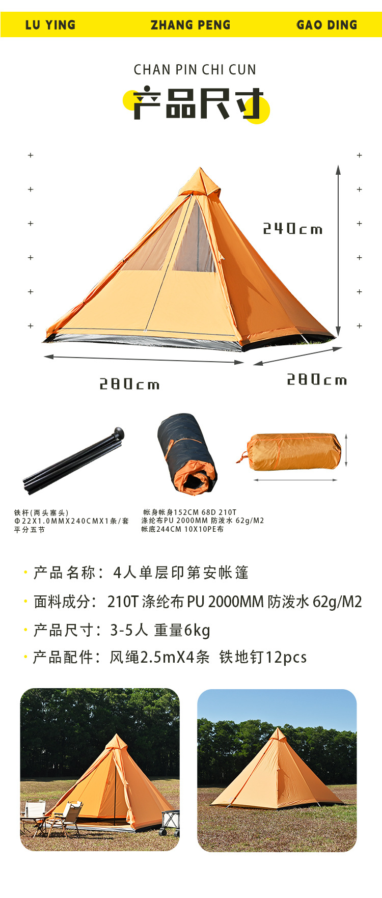 소스 공장 텐트 야외 피라미드 텐트 3-4 명 인도 캠핑 야영 방화 텐트