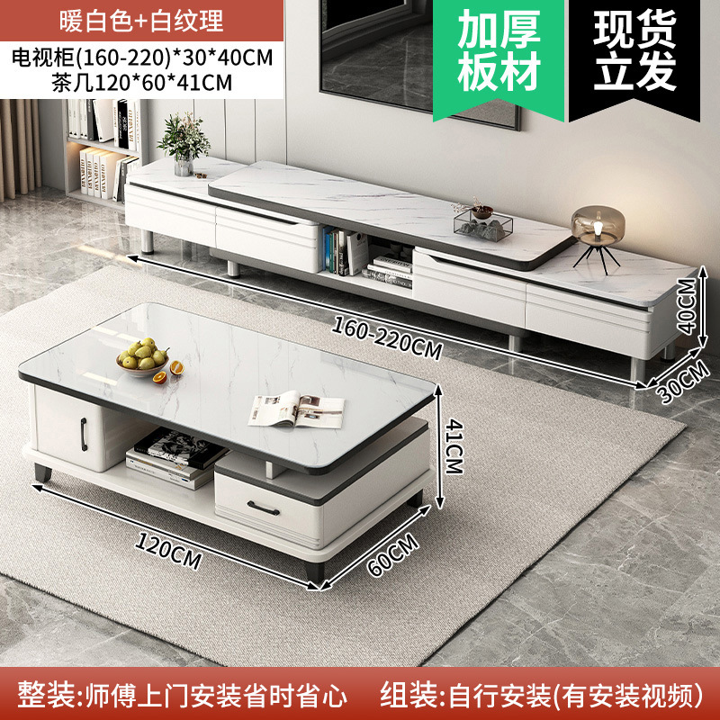 • 1.2 m 유리 티 테이블 + 개폐식 (200-270)cm TV 캐비닛